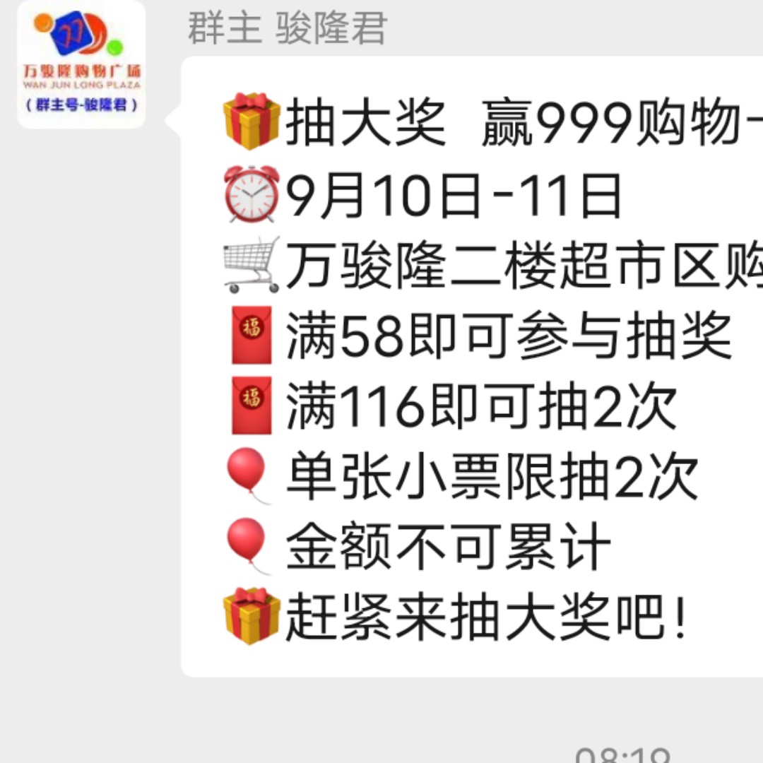 上午看到这个超市的福利群里面,有很多人在了大奖,还有一个女的中了一张999元的购物卡,这运气太好了,还有很多中牛奶和洗液的,只是我没有那个好运气。