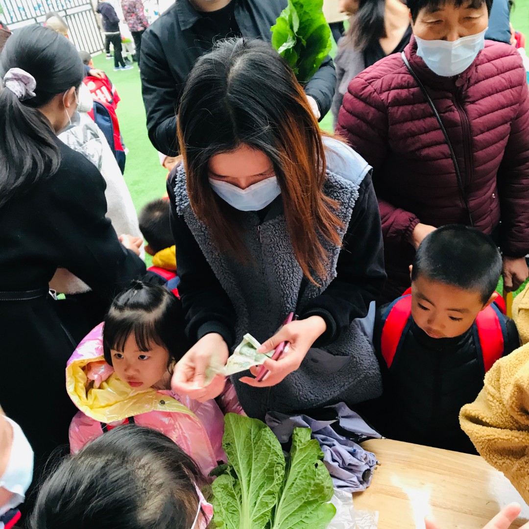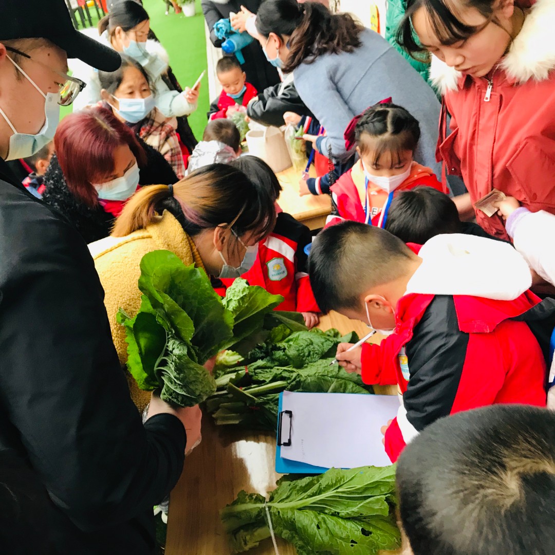 我们做了一个公益卖菜哦,小朋友自己卖自己种的蔬菜哦! 那么,我们的家长大朋友们也很捧场,把我们的蔬菜全部买光啦!!!(很开心⊙▽⊙)