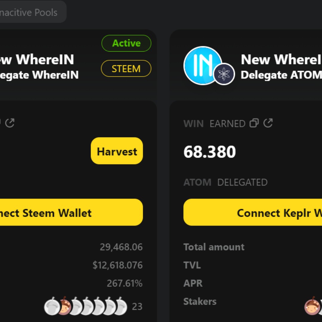这个就是在岛里可以质押SP进行挖矿,也就是WIN币。不光可以用SP挖,还可以用之前的PNUT挖,更可以用atom进行挖矿。