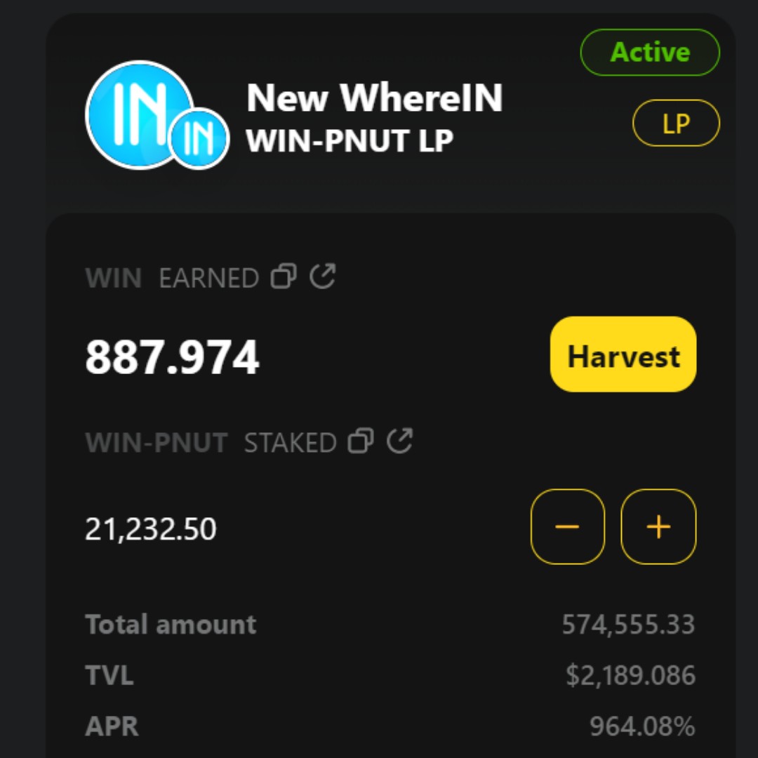 目前,我把手上有的一些SP以及PNUT进行了质押。PNUT我是兑换了一半win币进行LP组合,流动性挖矿。
