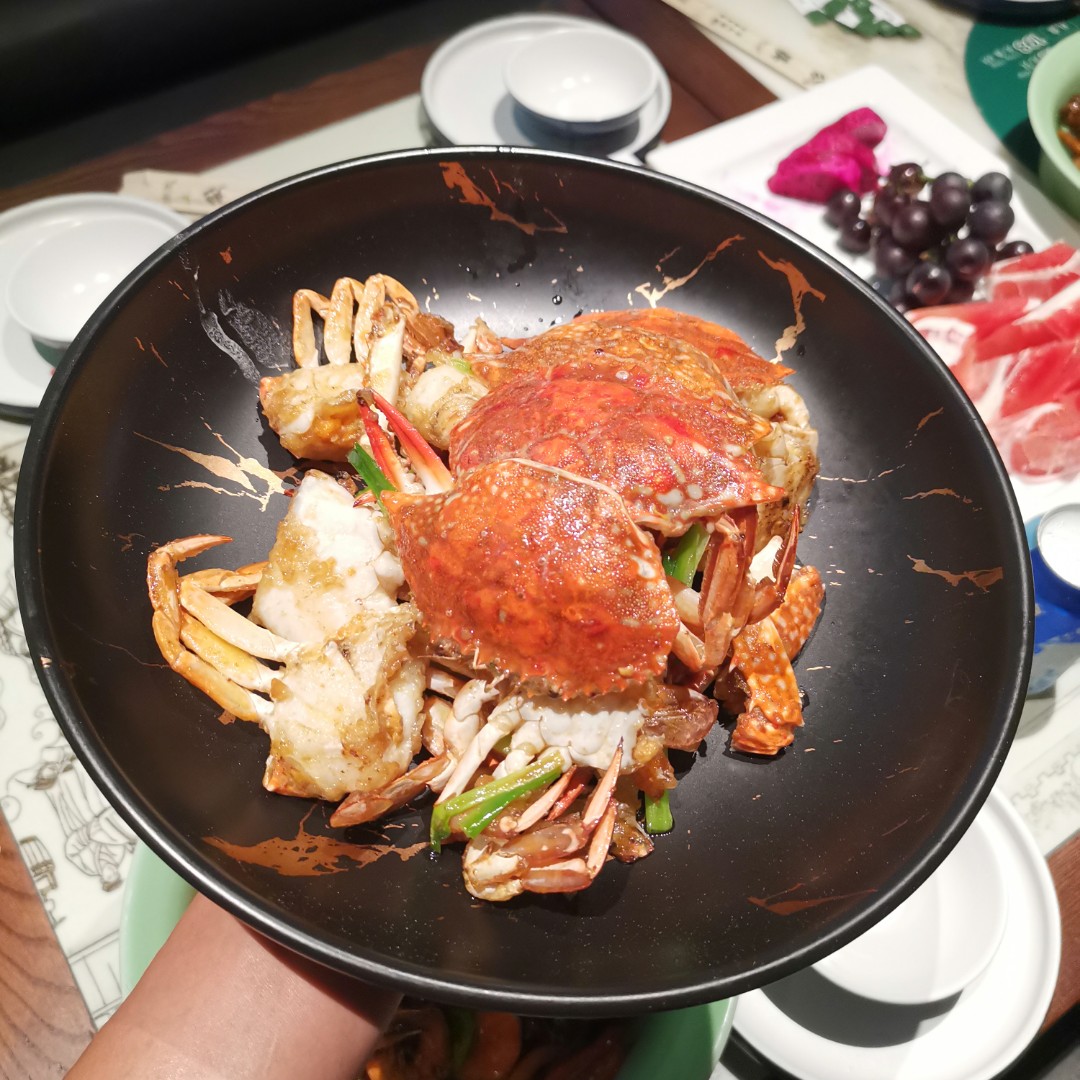 第四步:锅内入明油,倒入以上调料倒入大闸蟹,翻炒均匀后,生粉水勾芡起锅即成。