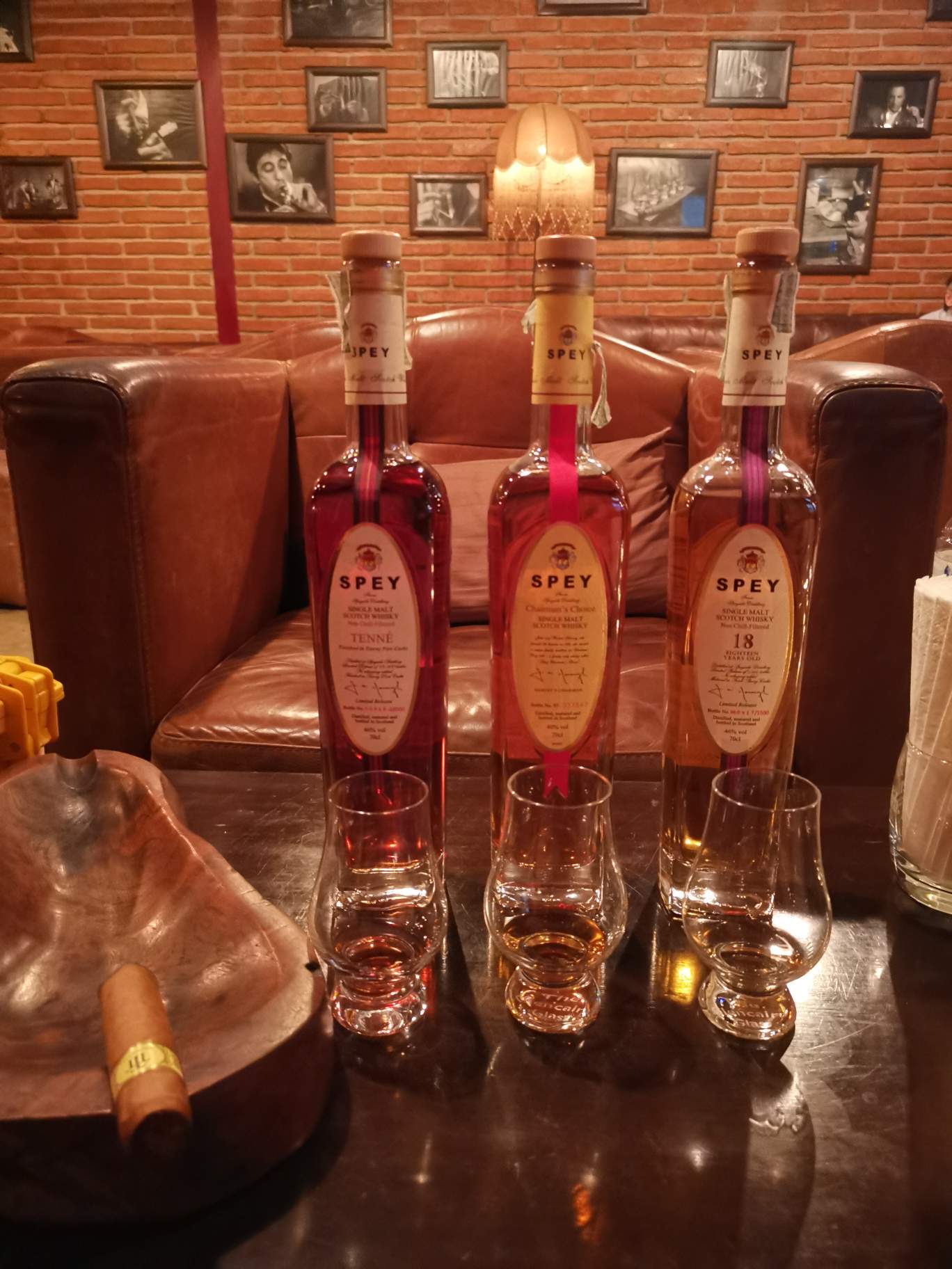 Its been a while since I went to Whisgars (see earlier post https://partiko.app/yippeekaiyay/life-and-travel-whisgars-sukhumvit-soi-23-bangkok-50eduyb9?referrer=yippeekaiyay) so I made my way there for a cigar (been a while since I had a cigar also). No sooner had I settled in and the lovely server installed these 3 bottles for me to try. I had bought the Chairman's Choice before so I knew how good it was but I was intrigued to taste the other 2. Pure coincidence that these are all Speyside whiskys so my run continues from the Speyside whisky flight (see last posting). And to think I wasn't planning to have a drink, just smoke a cigar.