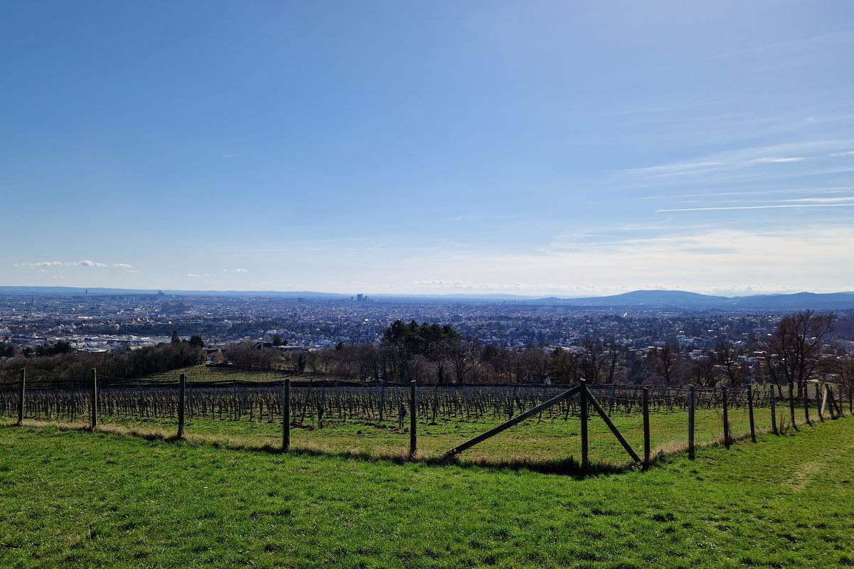 Eine wunderbare Aussicht auf die Bundeshauptstadt bietet die Bellevuewiese, die an der zum Cobenzl führenden Himmelstraße liegt. Über diese Wiese führt das "Wiener Wegerl" Nr. 11, das ich im Frühling gegangen bin und ab sofort auf Weinbergwandern beschreibe.