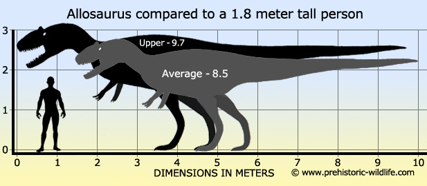 Allosaurus was up to 39 feet (11.9 meters) long, and weighed approximately 1.7 tons.