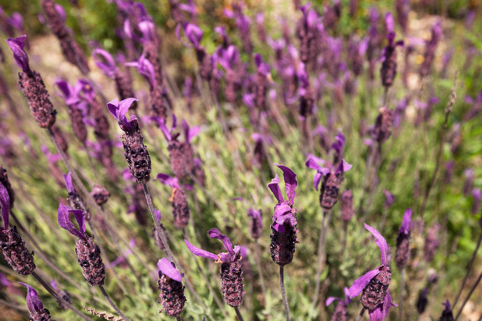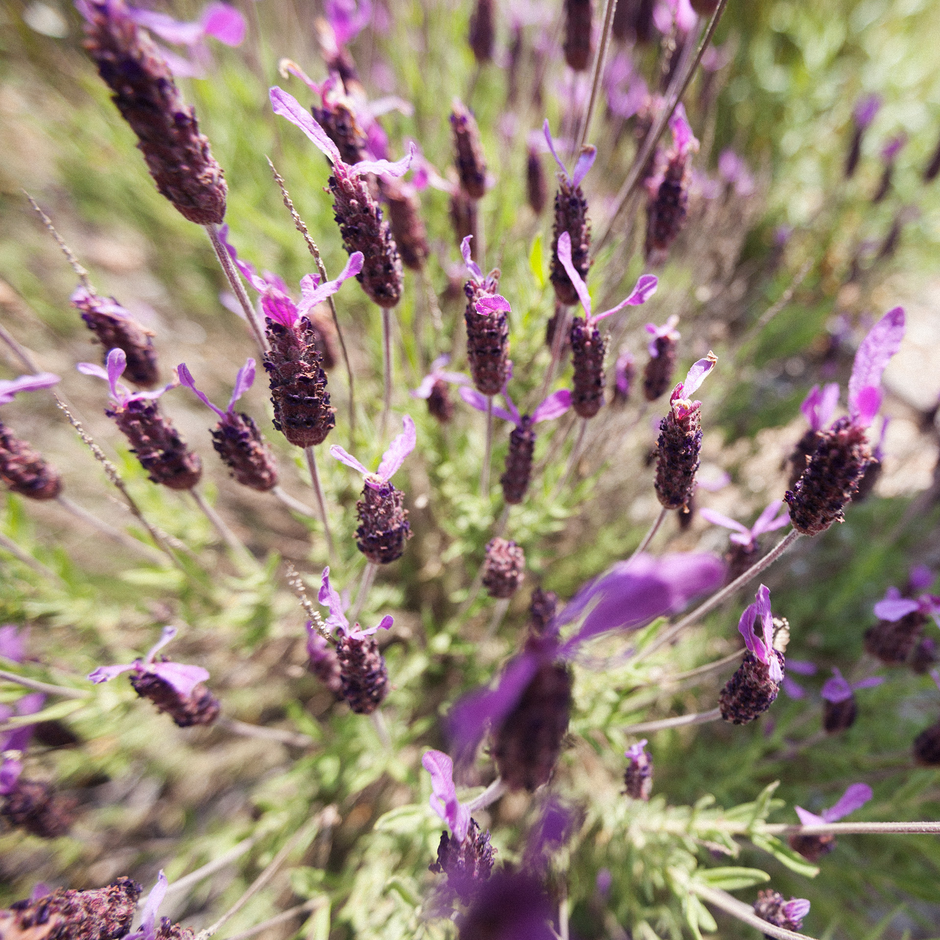 Part of our Alentejo's wildflower collection. One of our bees' source of nectar. Lavandula stoechas, the Spanish lavender or topped lavender (U.S.) or French lavender (U.K.), is a species of flowering plant, occurring naturally in several Mediterranean countries, including France, Spain, Italy and Greece. This evergreen shrub, usually grows to 30–100 cm (12–39 in) tall and occasionally up to 2 m (7 ft) high in the subspecies luisieri. The leaves are 1–4 cm long, greyish and tomentose.