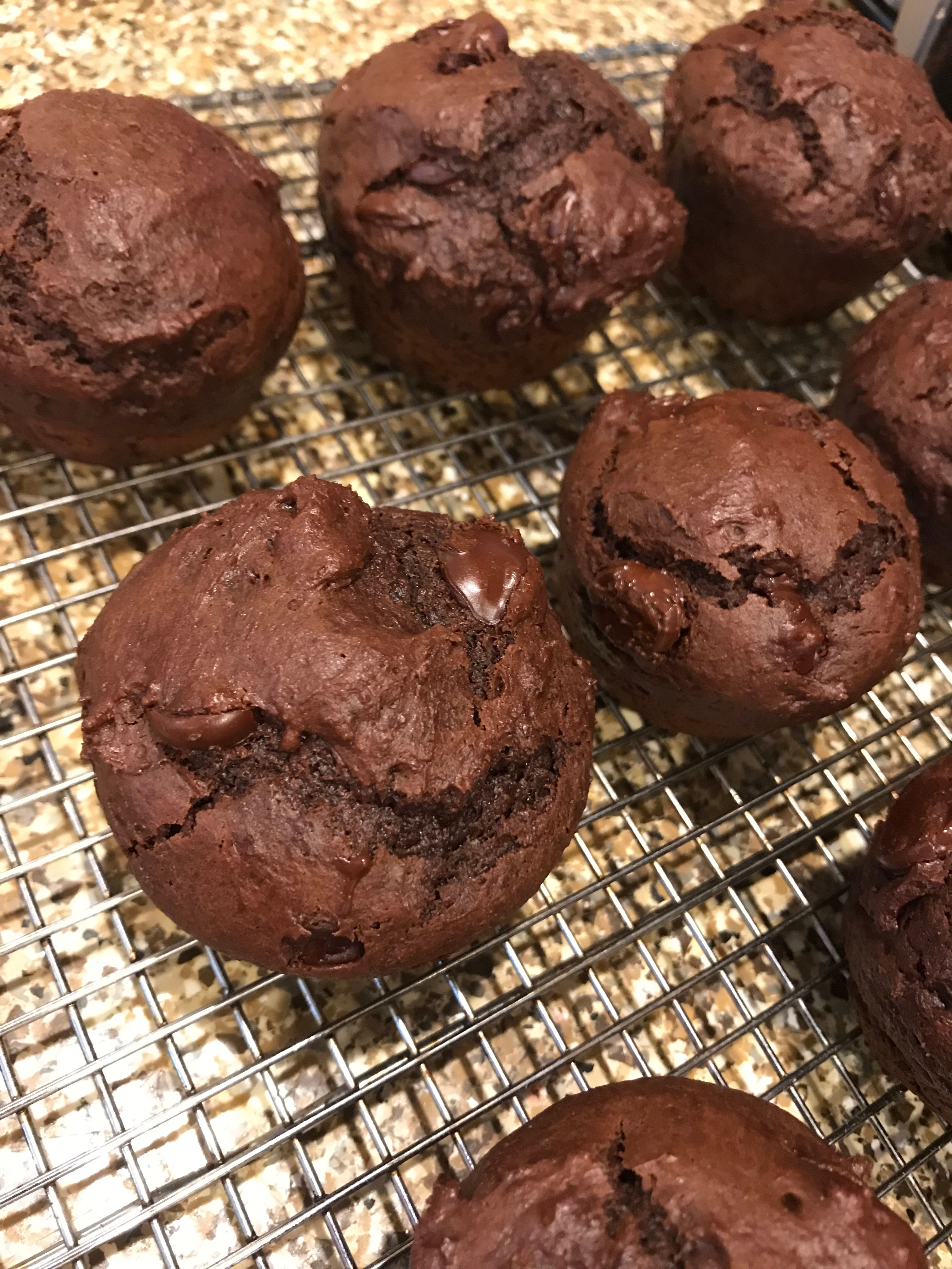 The best part about snowy days though is filling the house with delicious baking smells. Sometimes when I want a warm #chocolate treat I'll make a batch of delicious double chocolate muffins. They're pretty quick to make and go perfectly with a glass of cold milk.