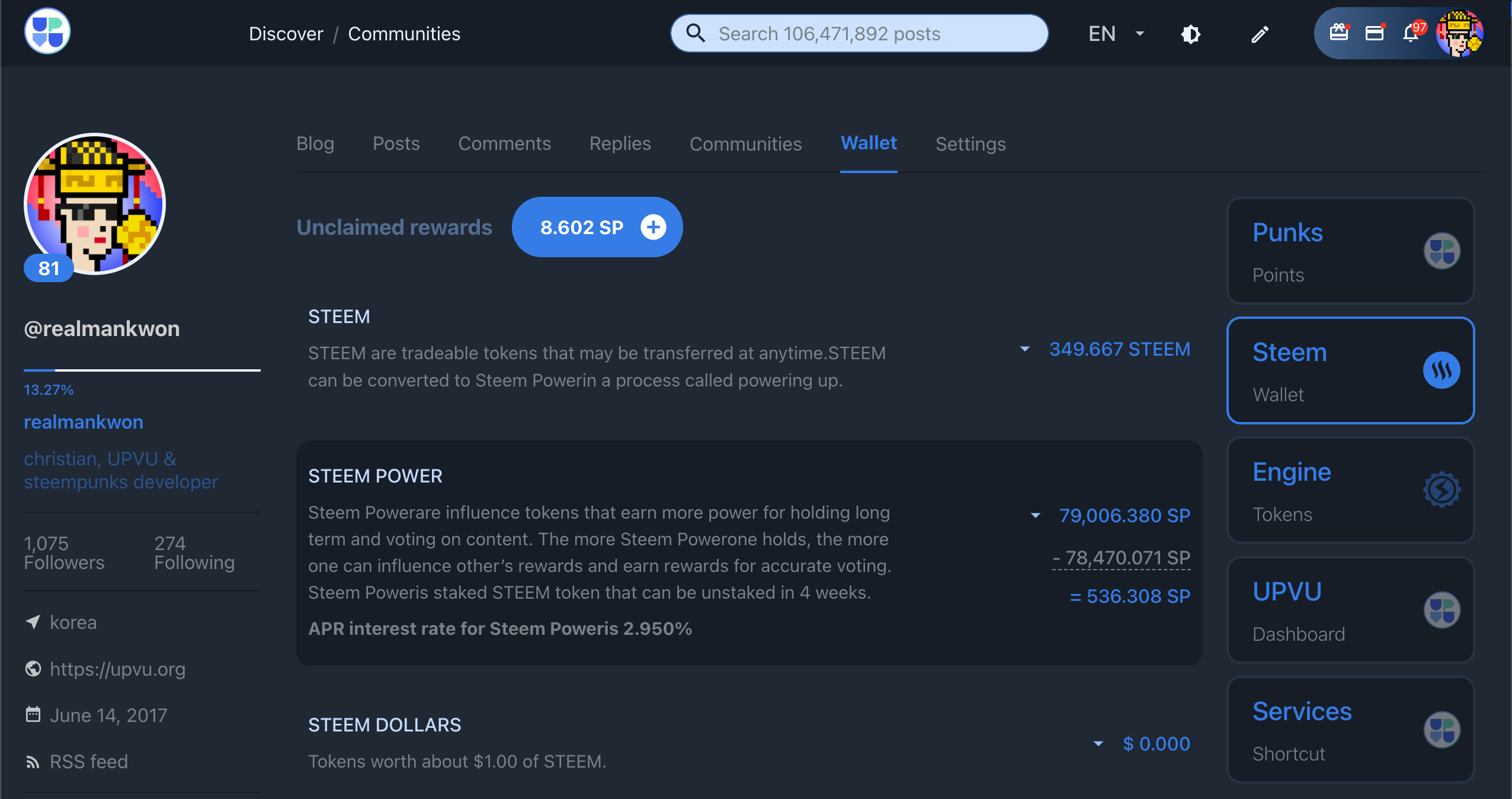 For users who choose to receive UPVU delegation rewards in UPVU tokens rather than STEEM, you guys will be rewarded in STEEM instead of UPVU tokens until Steem Engine is restored. As shown in the image above, you can check the transaction history of steemitwallet.
