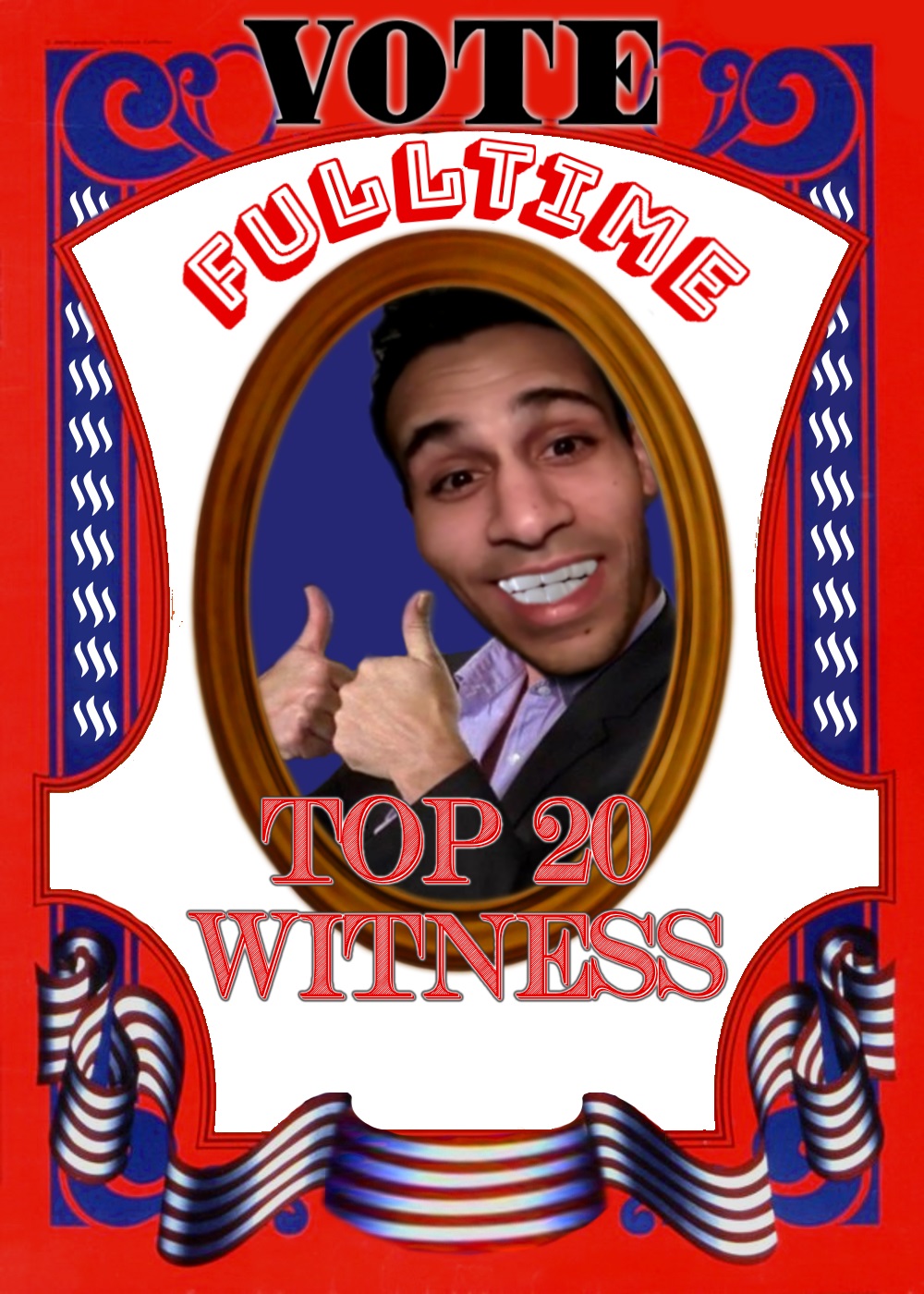 @fulltimegeek has my vote. I still have some spaces to fill, hmmmm I better get to witness voting.