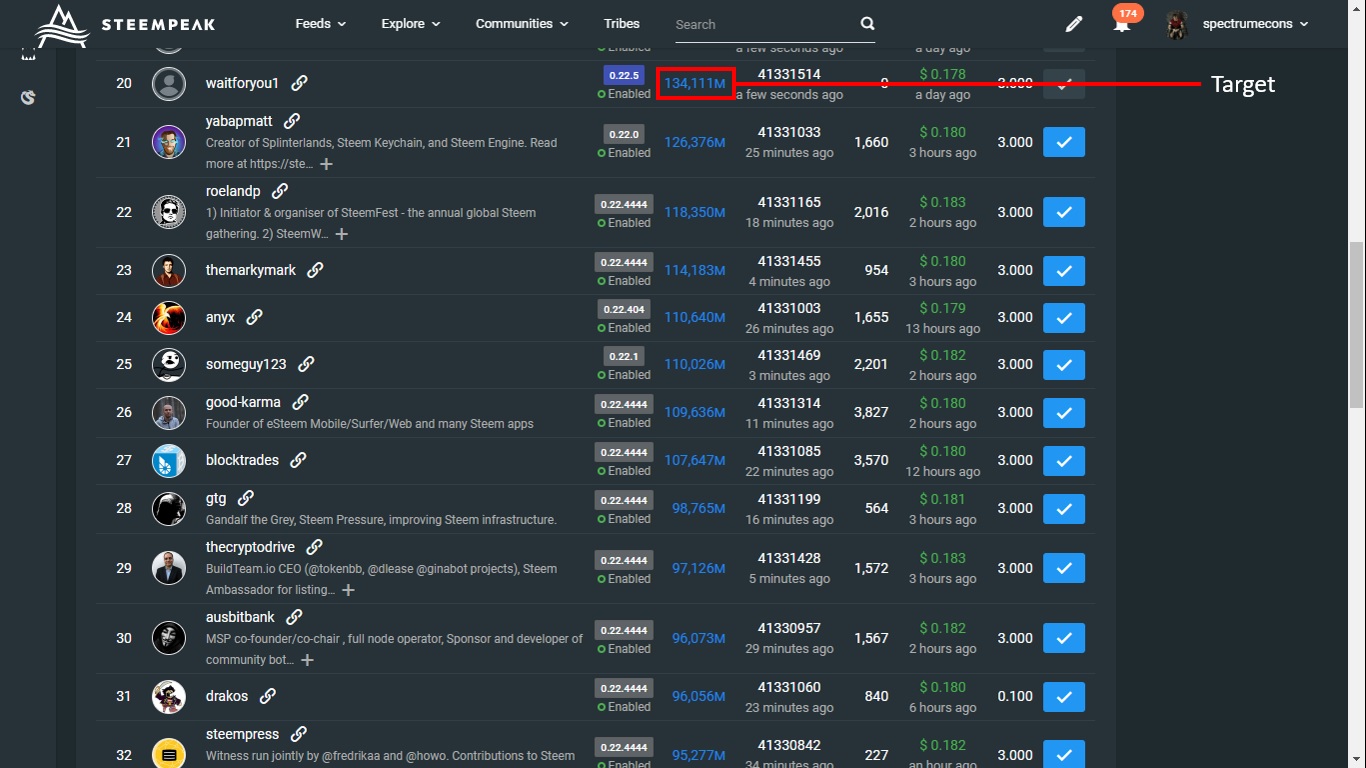 The exchanges that took part in the coup already backed out, we're only missing 2.2% to bring our first community witness back in. I put aside all other differences and moved my witness votes to the active top 30 from the community, and I urge every other stakeholder to do the same.