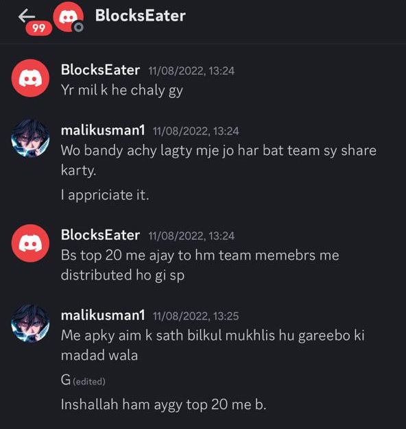 But now, after mutual decision (when the witness is already ranked 20), we decided to remind her about her promises but she misbehaved and removed us from the team server even.