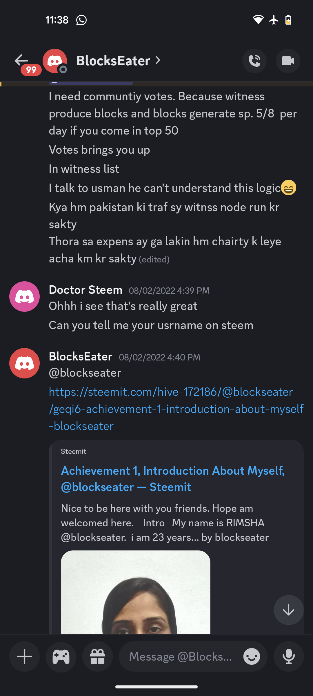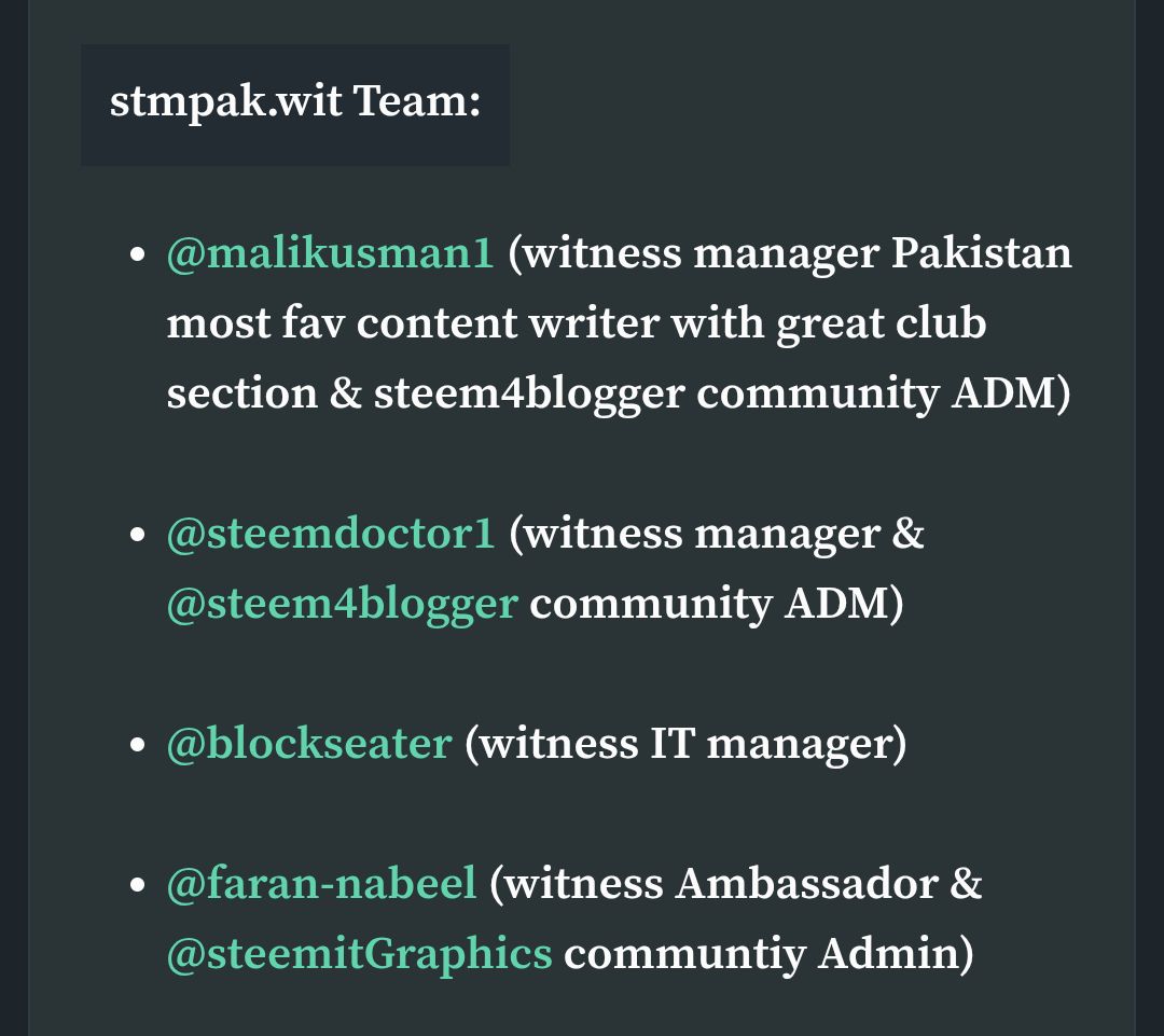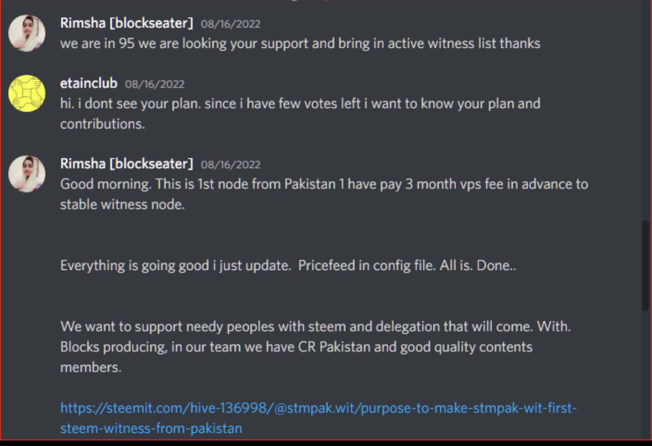 Anyways, the @stmpak.wit witness got ready after some days, we started promoting the witness everywhere. We were a complete team of 4 (@steemdoctor1, @malikusman1, @faran-nabeel and her, @blockseater).