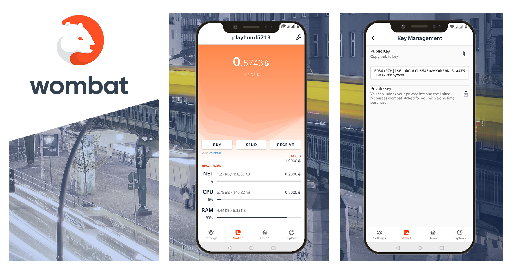 Wombat is optimized for great user experience of everyday users enabling everyone to use EOS dApps without prior blockchain knowledge and without spending money initially. Most of the first-time users do not know what a key pair is, how it works and why it is important to keep the private key secure. As a consequence, Wombat does not expose the user to these topics initially and pays for the resources in advance to give everyone the chance to experience what the Web 3.0 and Wombat is all about.