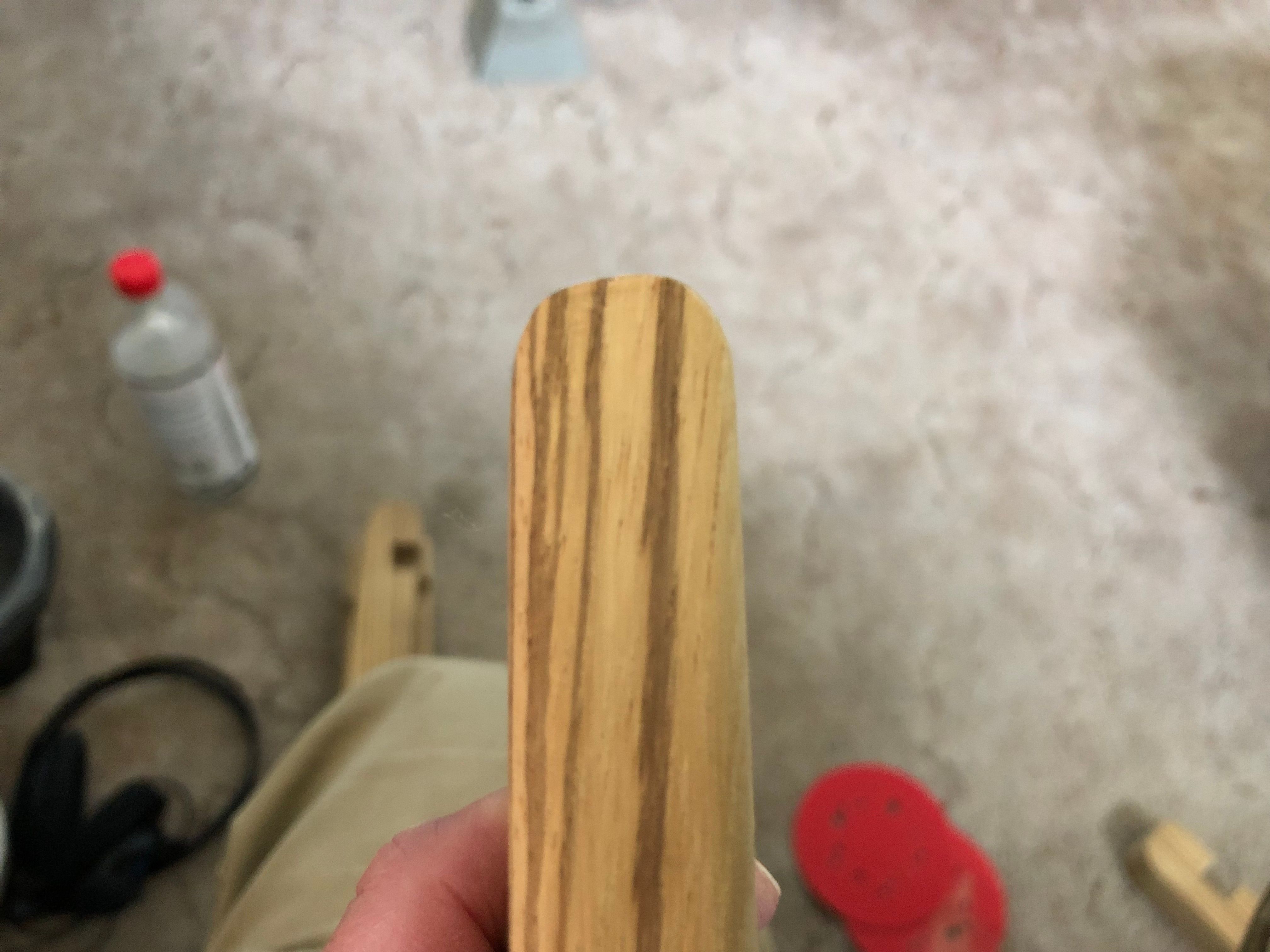 This is where the finish sanding starts. I didn't want to find the flat role of straight, no holes, 325 Grit sandpaper, I've been searching for, for the last two months, so I used a folded piece of my Dewalt 225 Grit, folded.