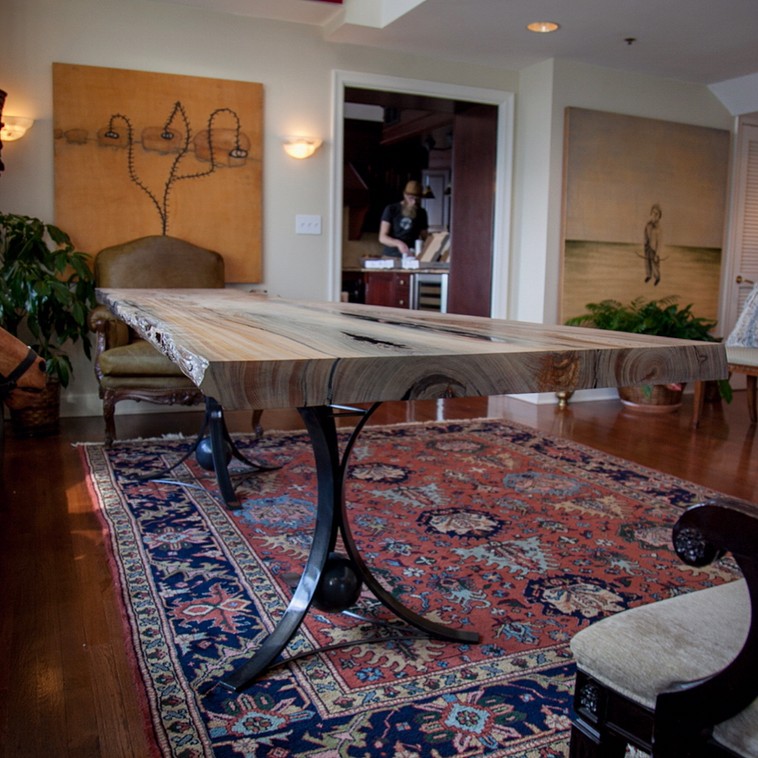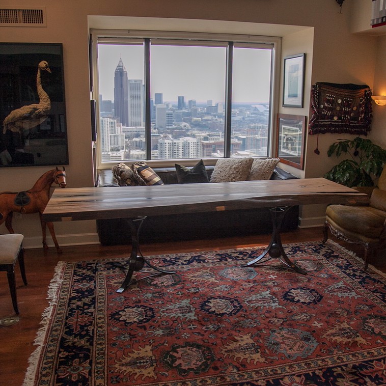 We worked on this table for the better part of 6 months before we safely delivered it to its new home. We stood on this log when it was still sitting in the river and we've traveled with it from the Ogeechee river in Louisville, Ga to the sawmill in Nashville, TN, back to our shop in Athens, Ga and finally to the penthouse of the Four Seasons in Atlanta, Ga. We connect deeply with this piece of wood which was once lost at the bottom of a river but now overlooks the city. We too, once felt lost and hopeless but we were given an opportunity to start over, and have now found our purpose. No matter how insignificant you may feel, you have something valuable to offer the world, it's never too late to find your way and rise up.