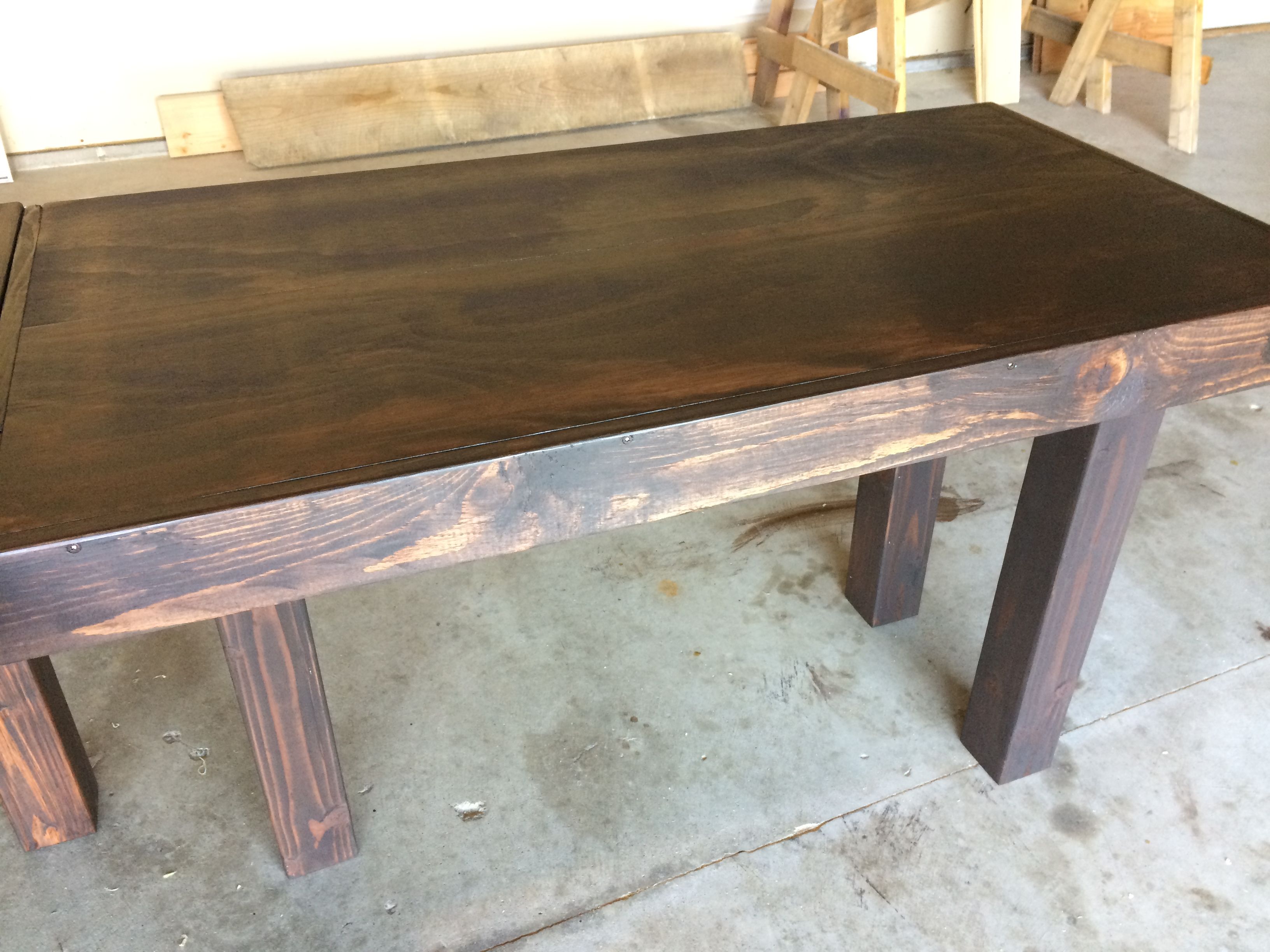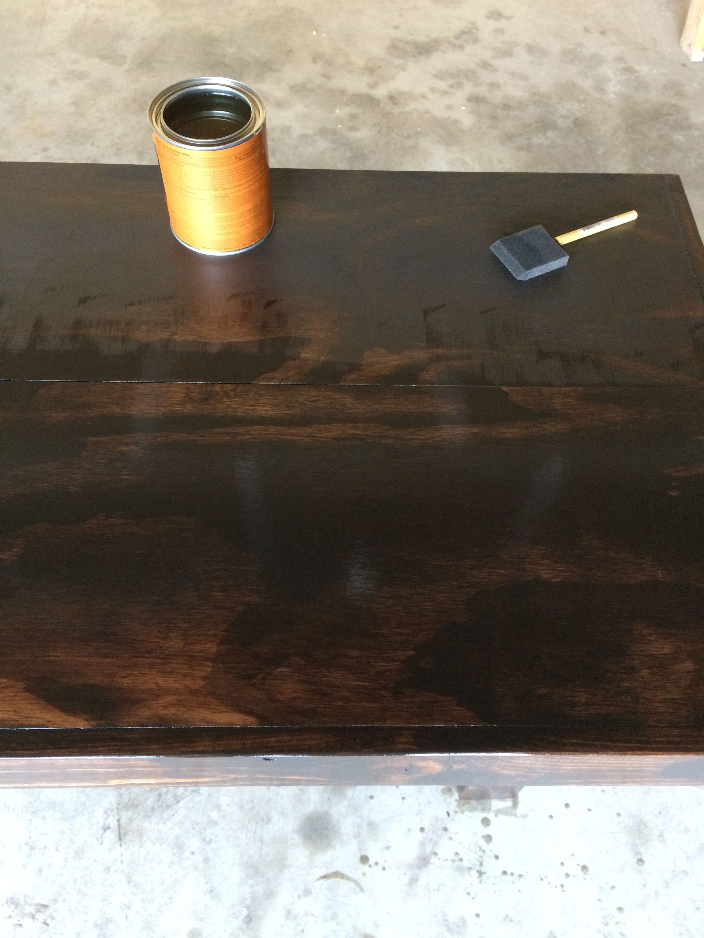 Staining and applying the polyurethane (which is like a finishing seal) was much easier than the actual building but surprising just as fun! It's amazing how much you can learn from just starting projects. I quickly found out that it's much easier to stain with a brush and using a rag to rub it in - you also get more of the wood grain to show up that way. With the polyurethane, it was a lot easier for me to apply an even coat with a foam brush than a regular brush (you can see the difference the polyurethane makes)!