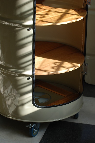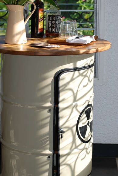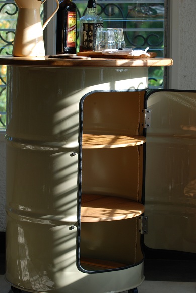 Private Order Oildrum Barurbansimplicity (25)in #woodworking • 7 years ago Interior tropical hardwood, framed mirror, LED RGB strip light to brighten up the party mood and shelves. The party can start right away. Customer is happy! #industrial #bar #diy #handmade