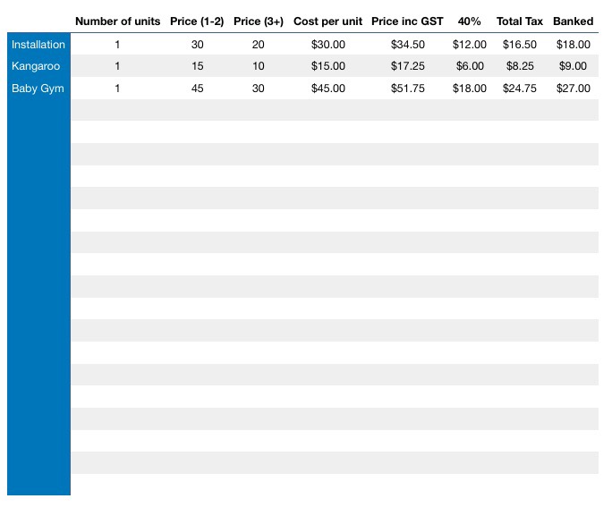 I decided to include pricing for GST even though I don’t have to claim it as well as put 40% aside for any other taxes and the rest goes into my pocket to pay for tools and materials.