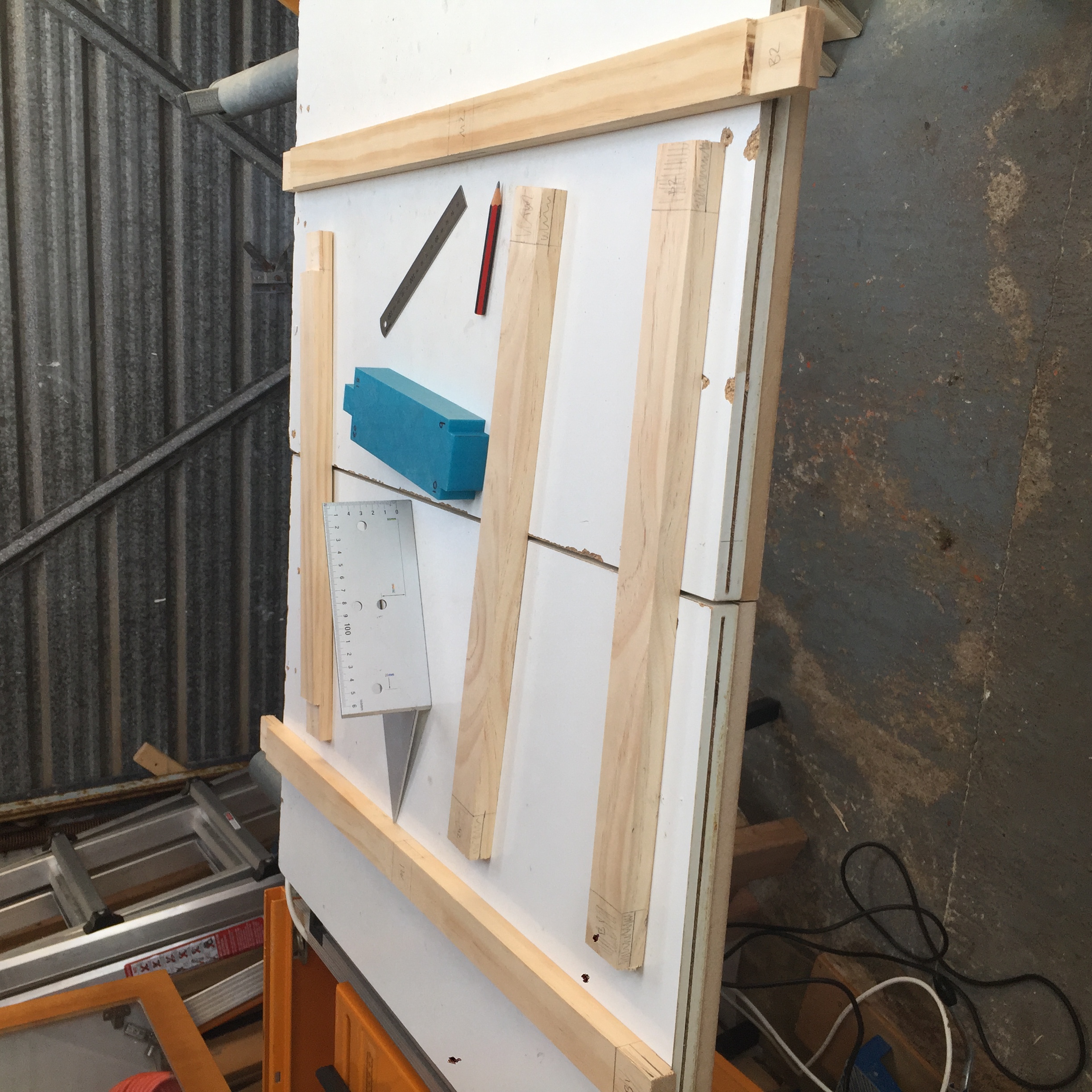 This ended up with me cutting the half-laps on the wrong pieces so the side struts ended up being the front and vice versa. This means the shelves ended up being the wrong size as well.
