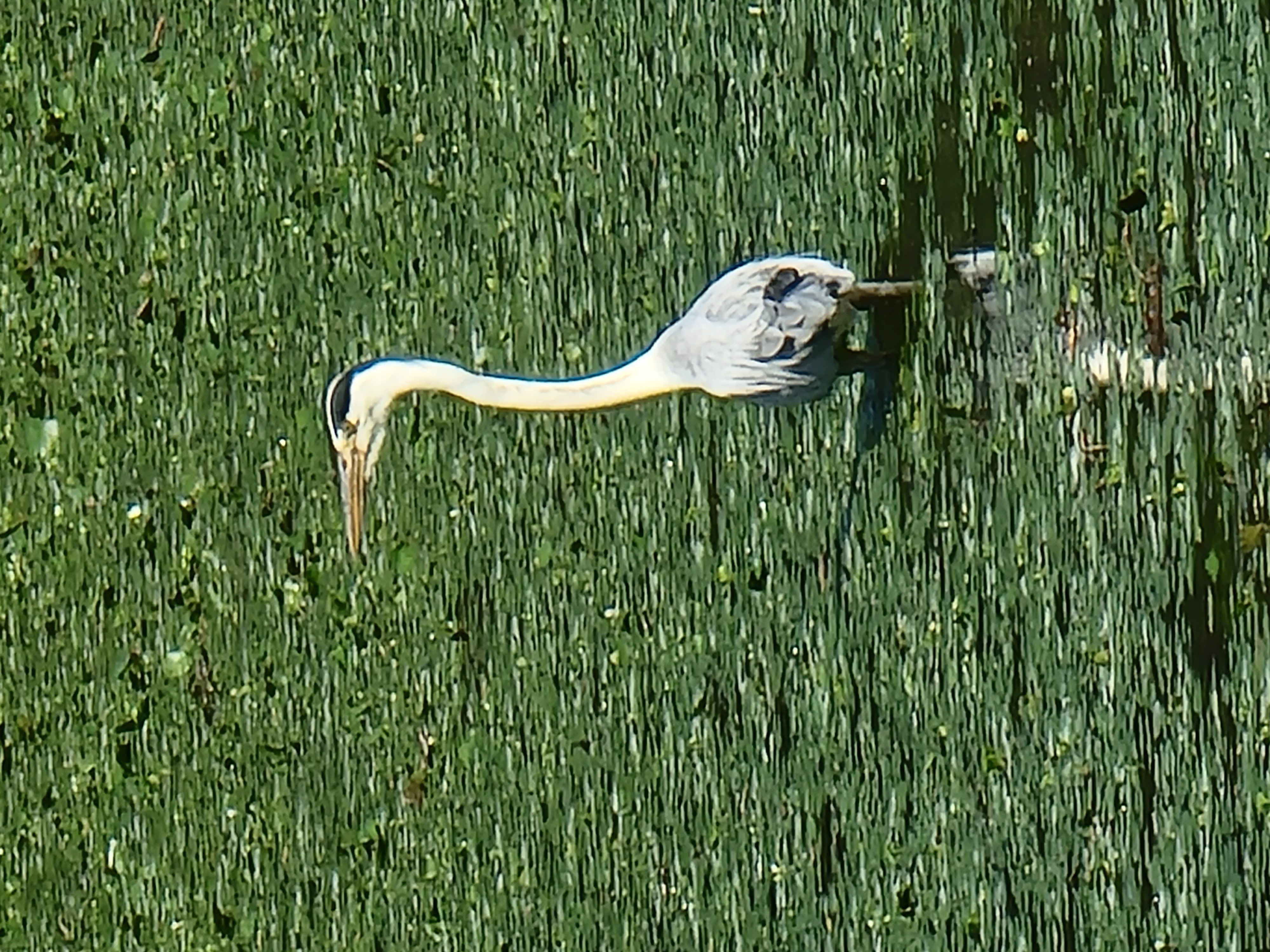 더 걸어가다보니 늪에서 천천히 걸어가며 먹이를 탐색하는 왜가리를 포착했습니다