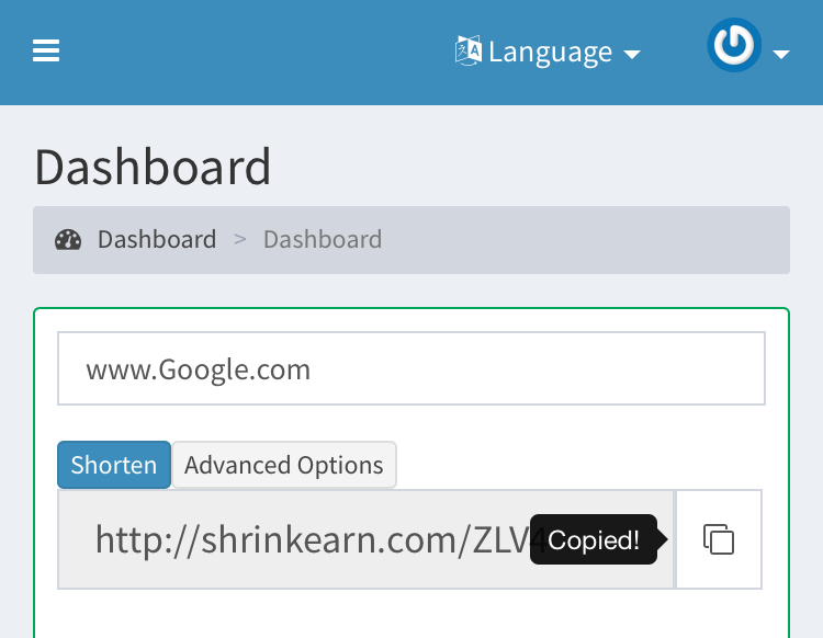 For example we copy www.google.com and make it short, now get this shortner link clicked by the people.