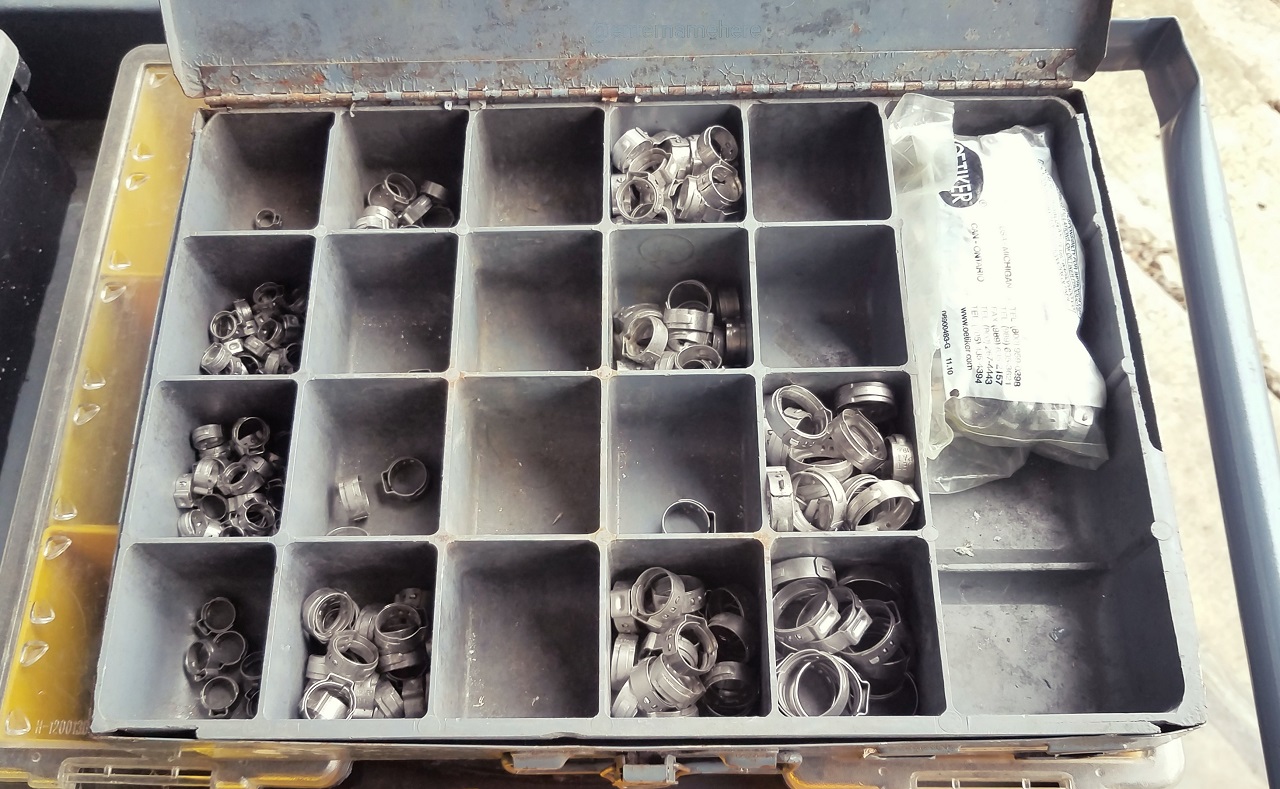 One of many daily tasks on the list: organizing. This time it's Oetiker clamps. They are a kind of clamp that secures flexible tubing, like on a beer system. These are now sorted by size - yes!