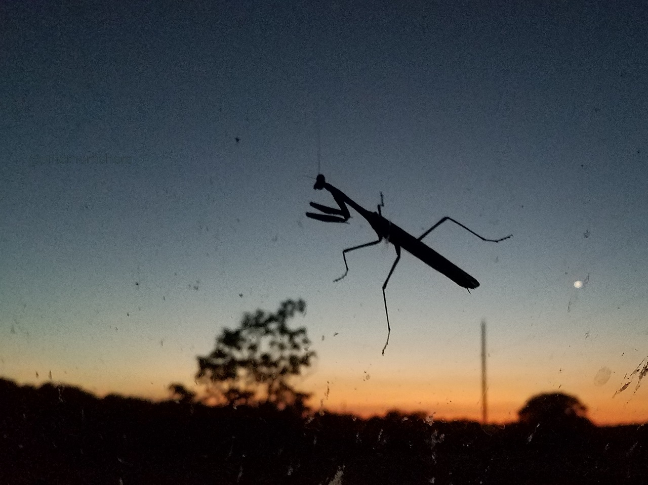 The mantis landed after we parked, he wanted to watch the sunset too. Thanks for stopping by :^]