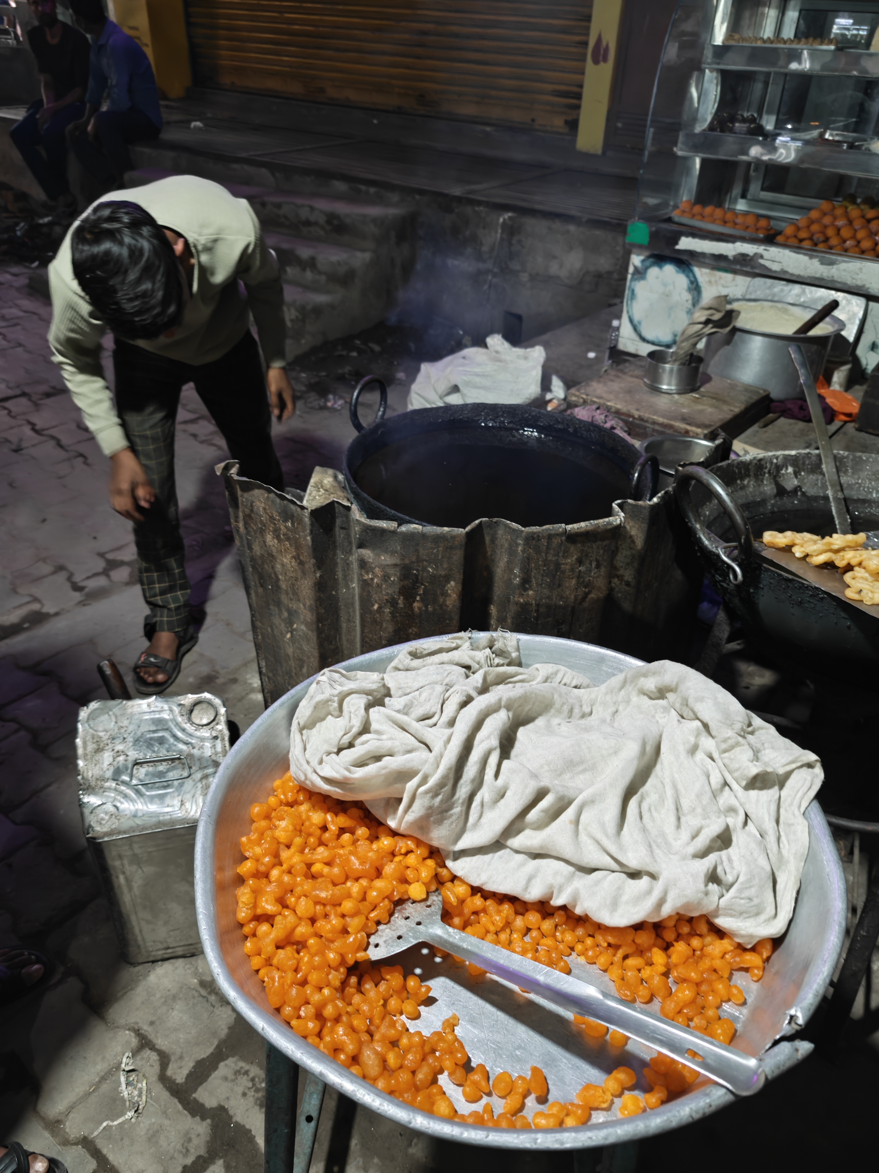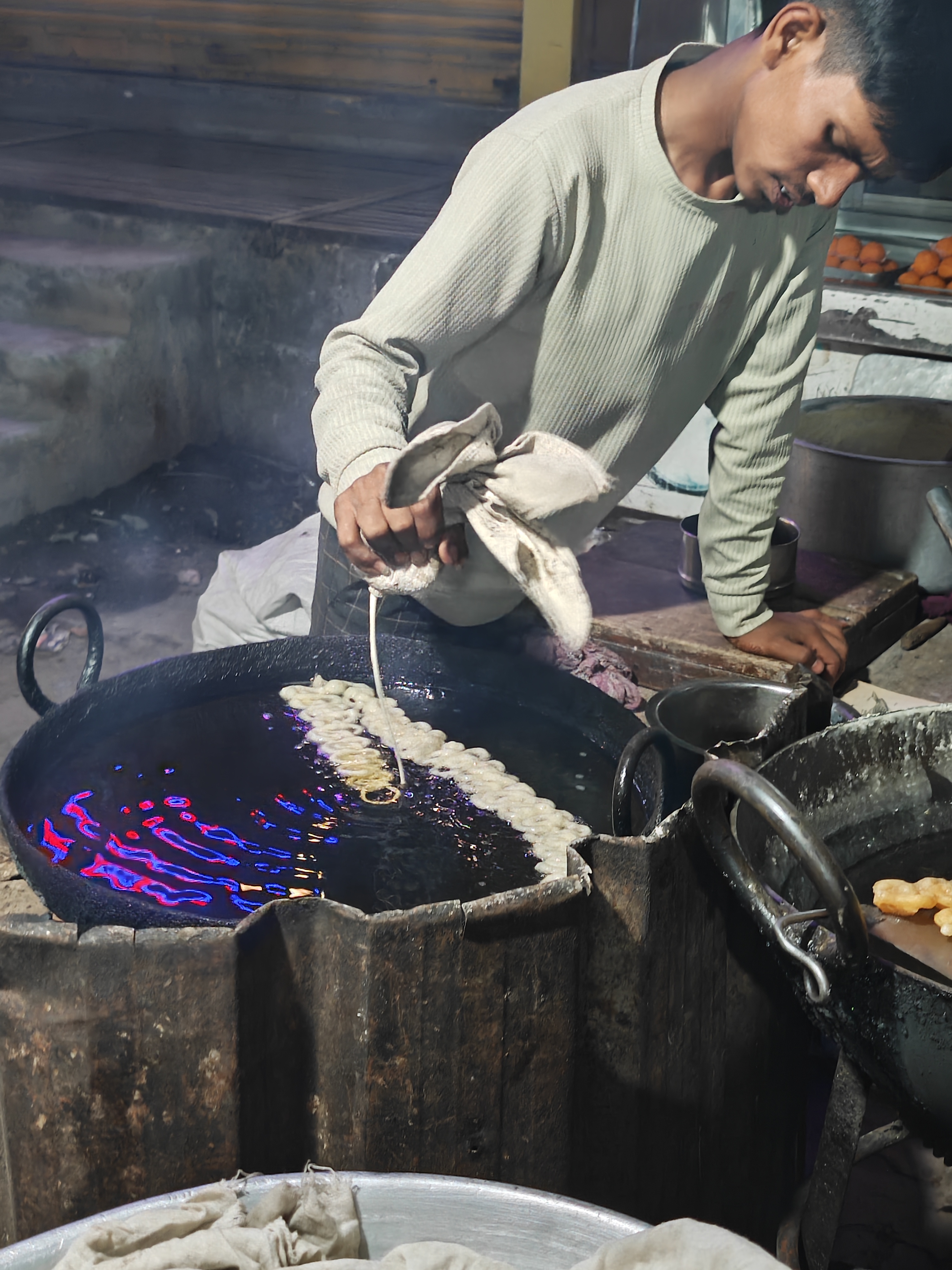 As soon as you step into a jalebi shop, you get hot jalebi made of desi ghee.
