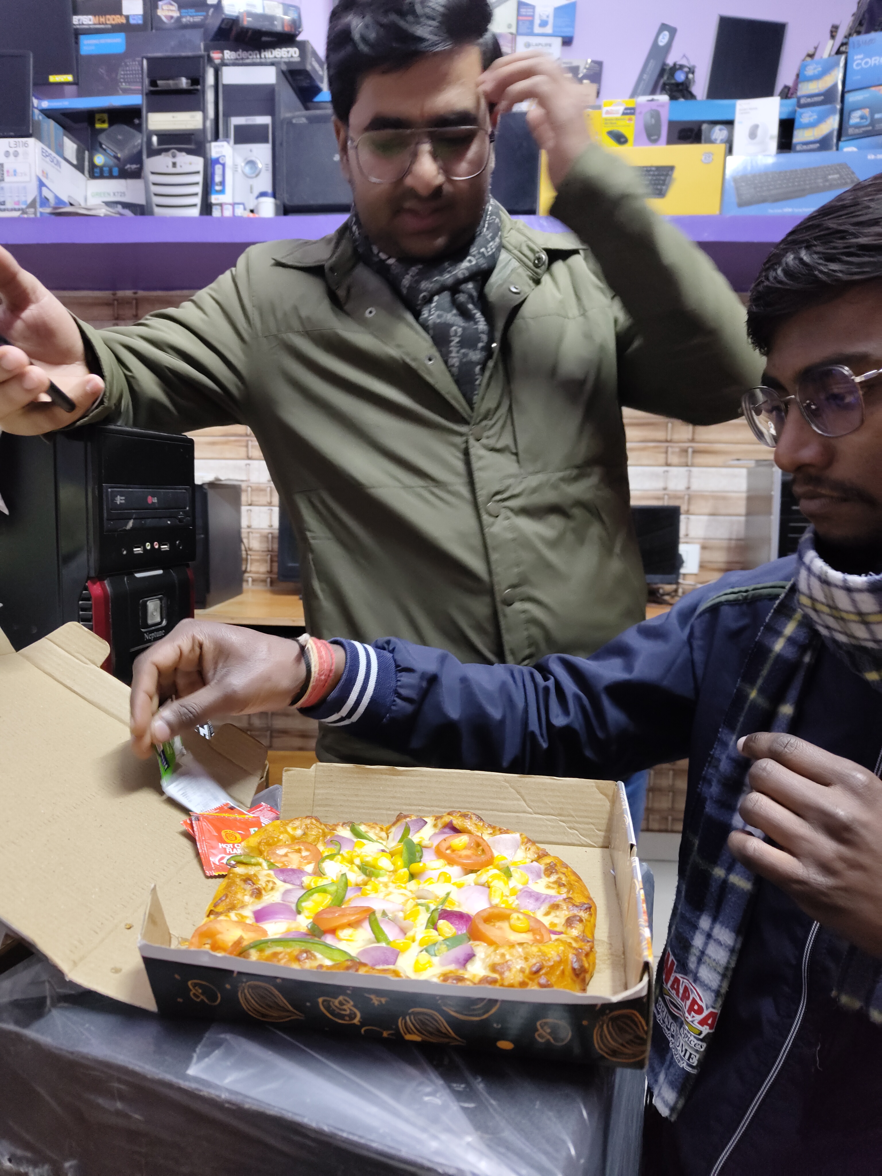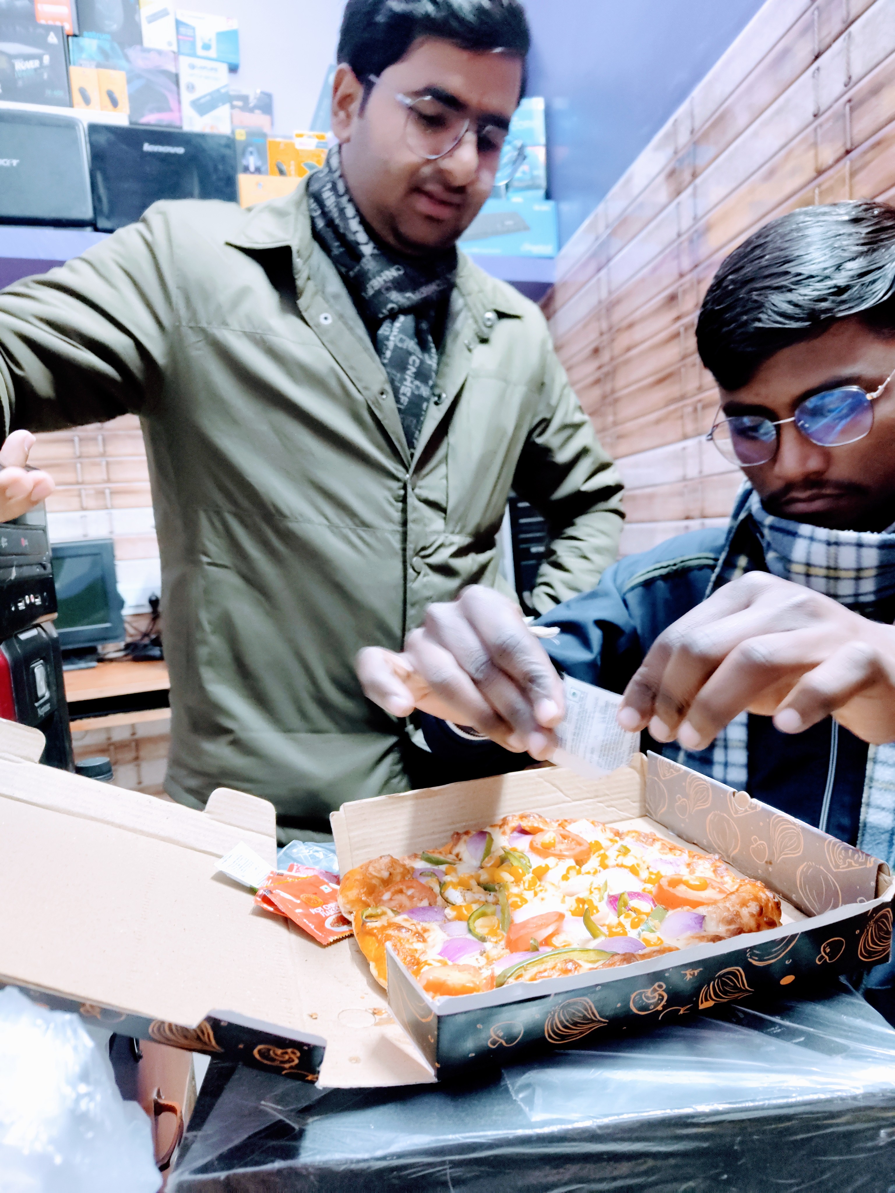 It was evening time then Himanshu comes and says that Sir what are you ordering, I told you what you want,She said that she wanted to have a party, I said if yes then go and have it, take pizza or samosas or cake, she said you can have the party today, I said not today Then Monsoon said that Anshul is coming and he will throw a party. It was around 6:15 then Anshul comes and says that Sir I want to have a party, Love give me the money. I said today the party is on your behalf.Then Anshul goes and reaches the pizza shop and orders the best pizza from there and closes it and it takes 15 to 10 minutes to get ready then he comes back and opens his pizza does We are all sitting in the office and working on the computer. I was making a post about blurt and then the pizza also arrives.