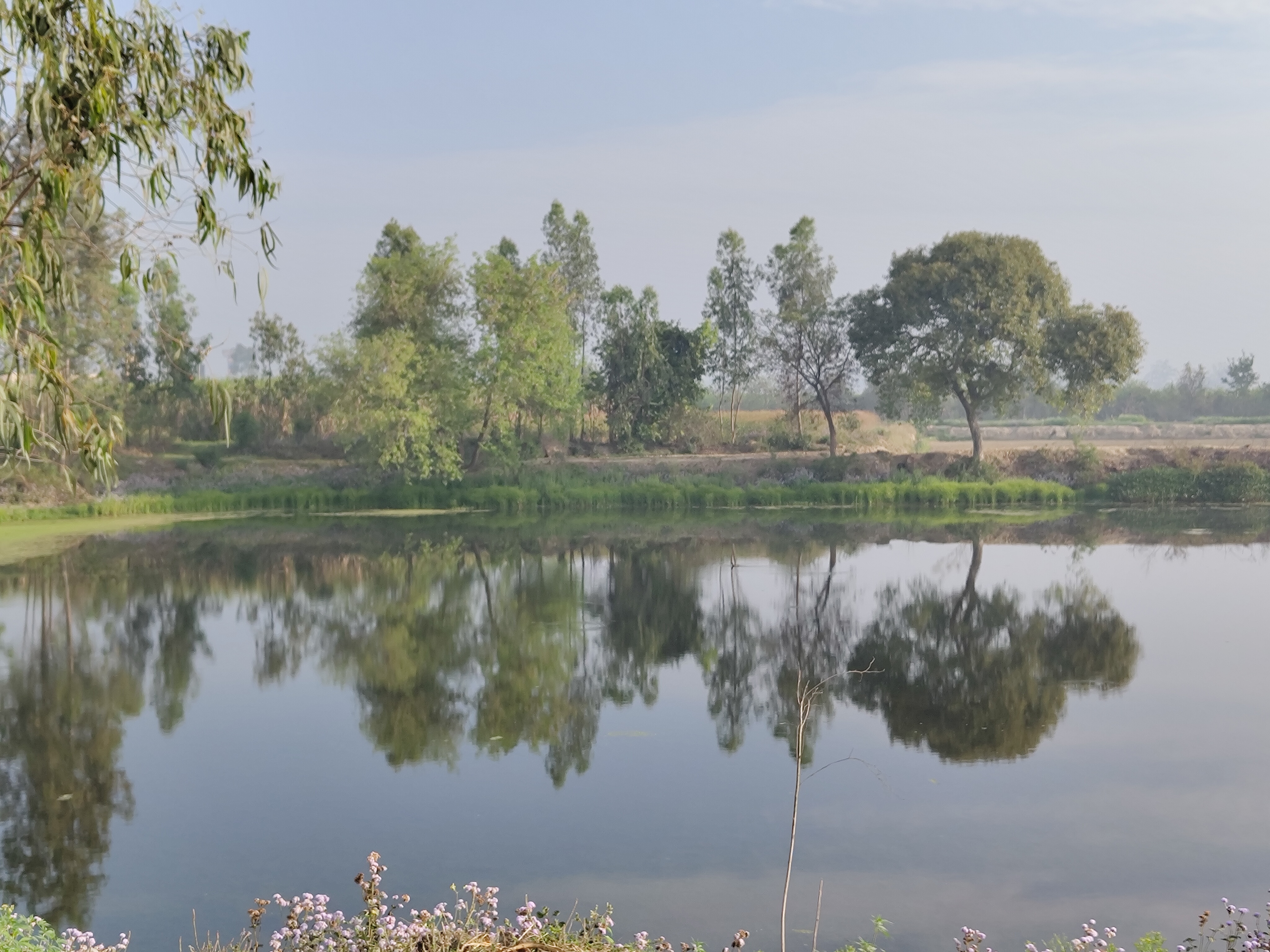 Nature has many forms. But when the eyes of the observer fall on it, it becomes very beautiful. It was morning time, then I go out for a walk. And I walk about 3 to 5 kilometers. By doing this I keep covering a long distance. Then while walking I see that the water of the pond has become clean. In which the shadow of the trees is also visible. This is rarely seen. This happens when the weather is very clean and beautiful. Because this is the new form of nature. In which our structure changes. Then I go closer. Then it makes the trees green. The shine of the blue sky is falling on the water. Such shine never decreases.