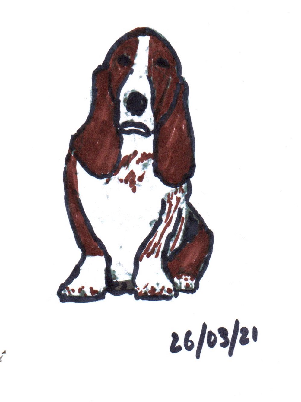 Being an animal lover, I have started with a basset hound and I am interested in hearing your thoughts. I would like to draw and colour more than I do and I like the simplicity which this approach allows.