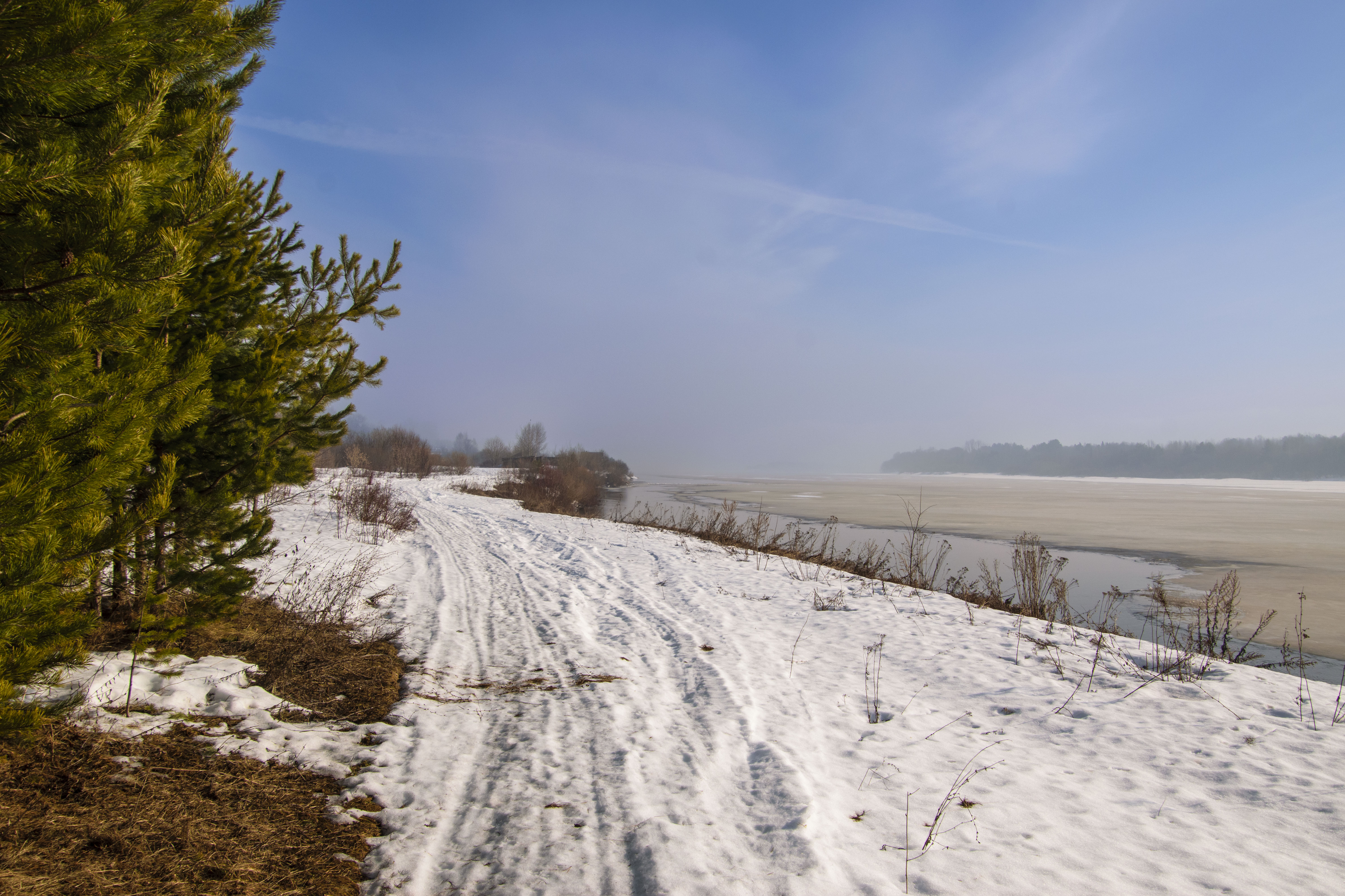 The walk was wonderful. I haven't been to the river for a week, and I saw big changes in it. Along the shore, the river was even cleared of ice.