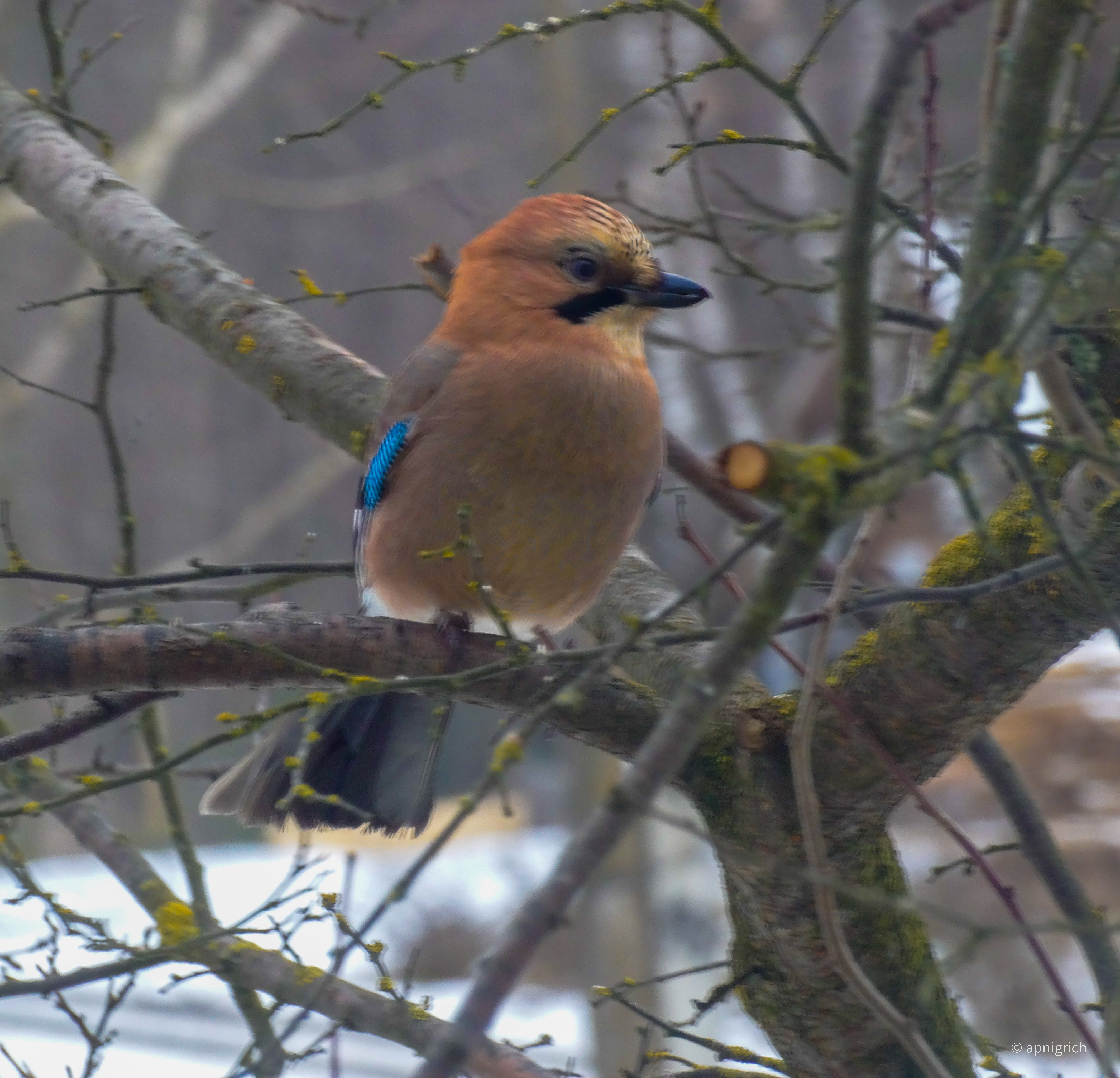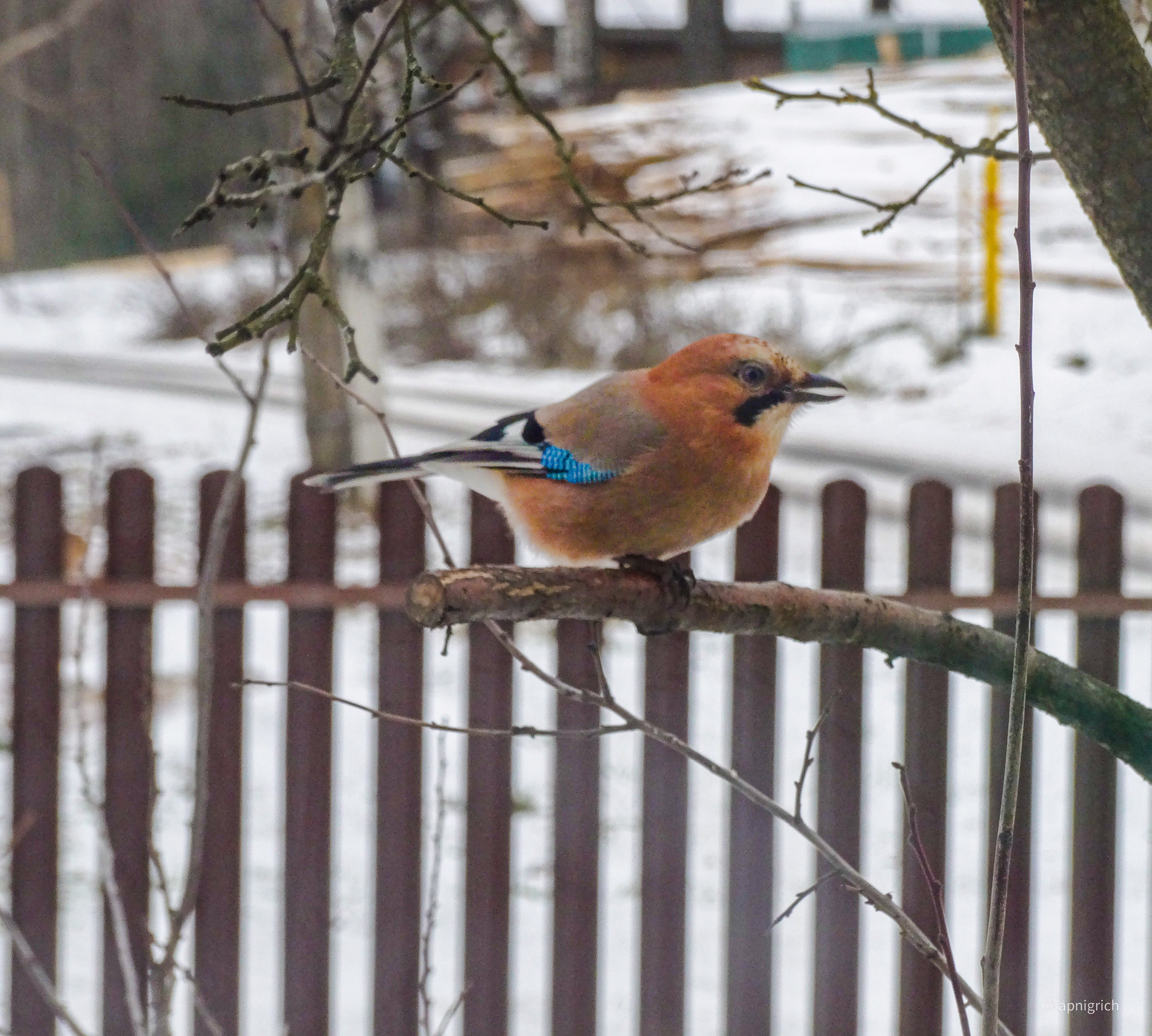 My daughter and son-in-law call jays parrots because they are bright and have colored plumage. Recently, they sent photos and said that a jay had also flown to their country house to the feeder.