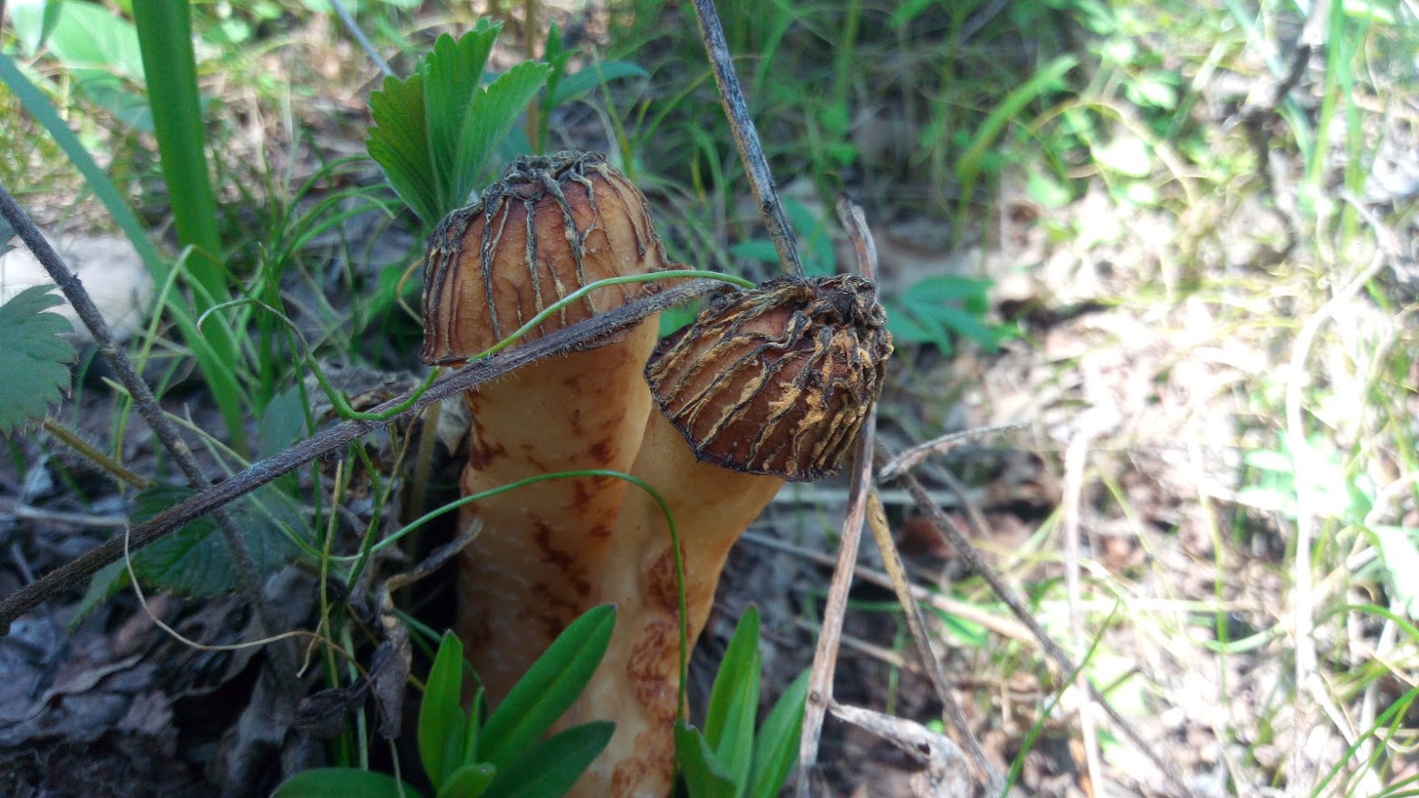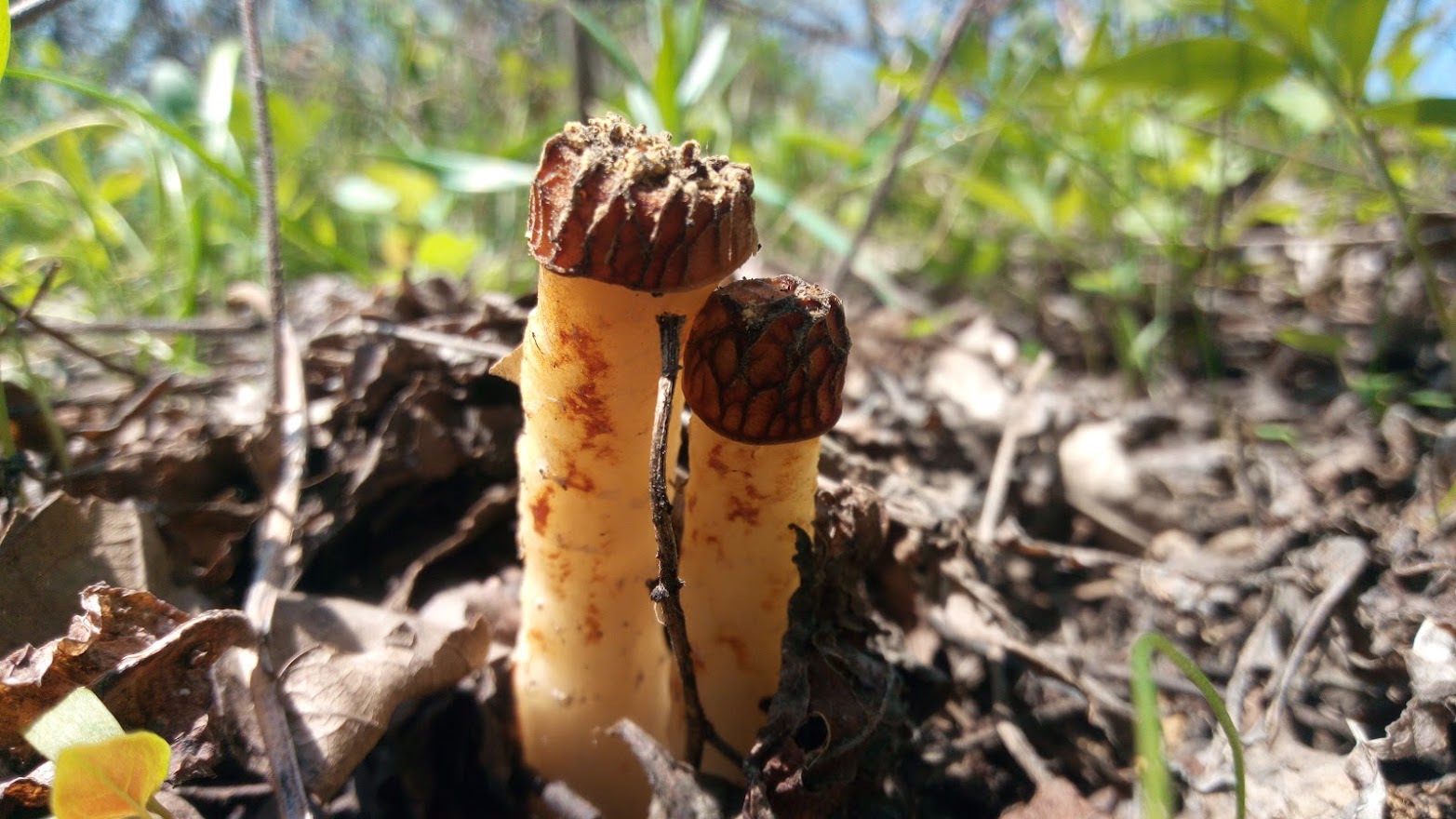 But when I approached the forest, I immediately noticed the forest morels sticking out high)