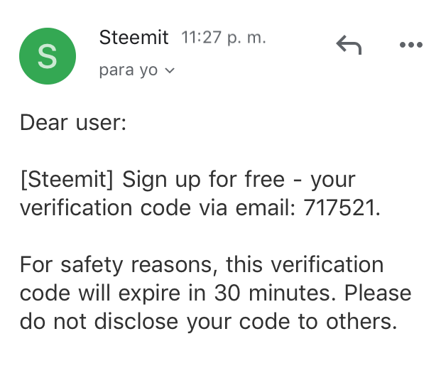 Debes darle a "Send code" para que te llegue un correo con el código de verificación parecido a este correo.