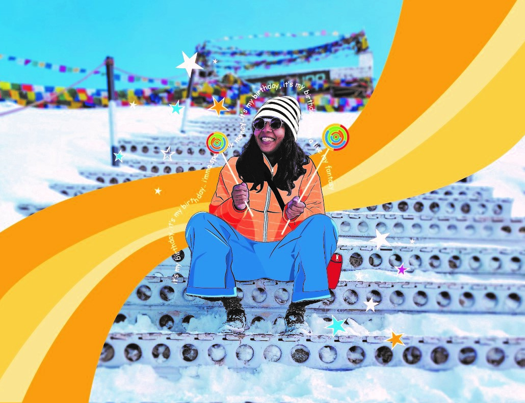 I tried different color combinations and elements to give it a birthday look. The picture was really beautiful so at one point, I felt a little bad to ruin it this way. Looking back at this, I definitely see things that I'd do differently now. But that's how you learn, right?