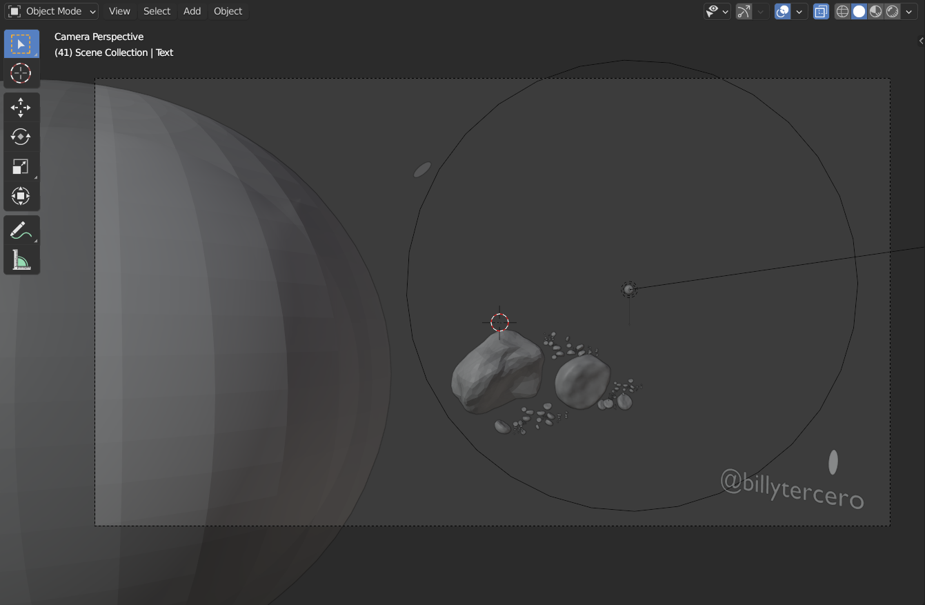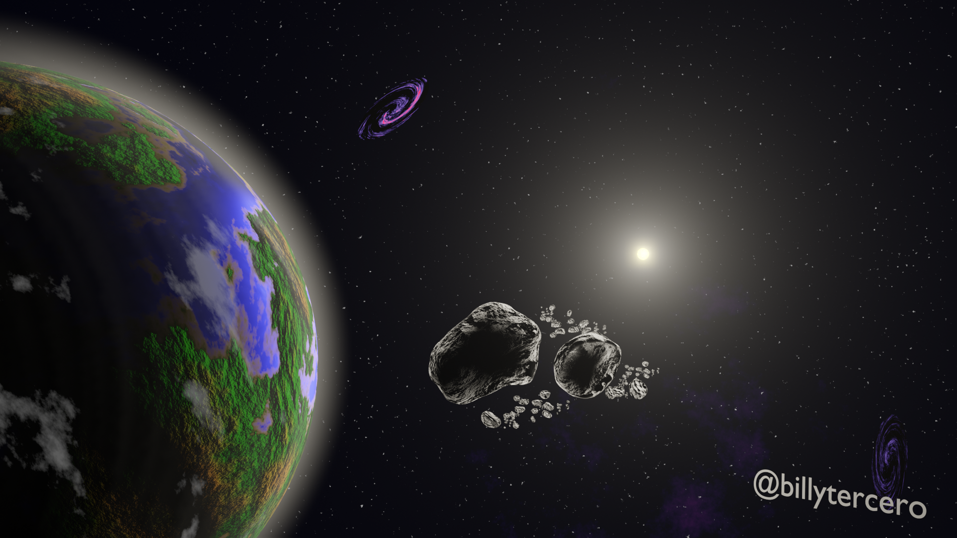 The asteroids were created from spheres, which we deformed using the tools of the "sculpt" mode, we created about three types of rocky shapes which we repeated (copying and pasting several times) but with different sizes.