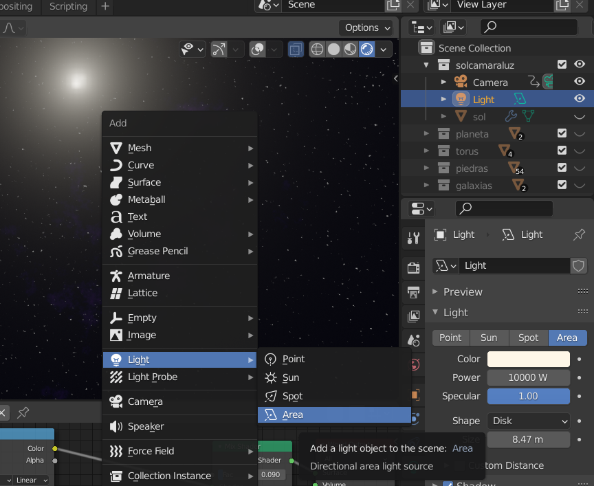 With "add" we apply a area type lighting, we give it the necessary values (we can see them in the image).