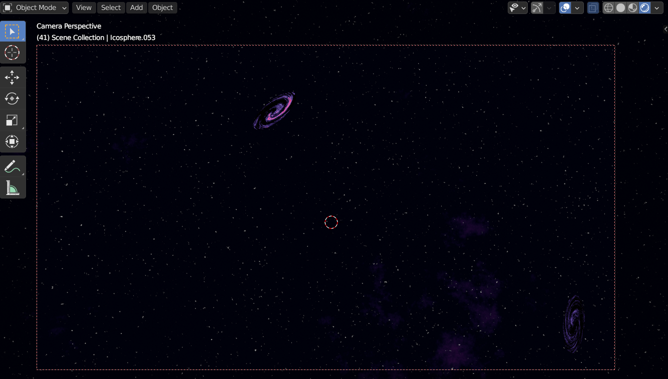 To create galaxies, we generate a texture for a circle with a "noise" node that we color with a "ColoRamp", and then we select only the center of the figure in edit mode and rotate until we obtain the shape we want.