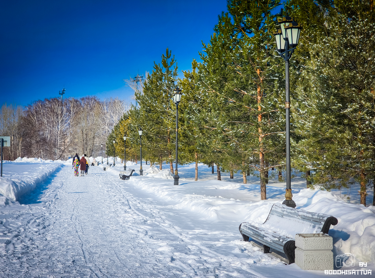 Sunny winter day in the city park