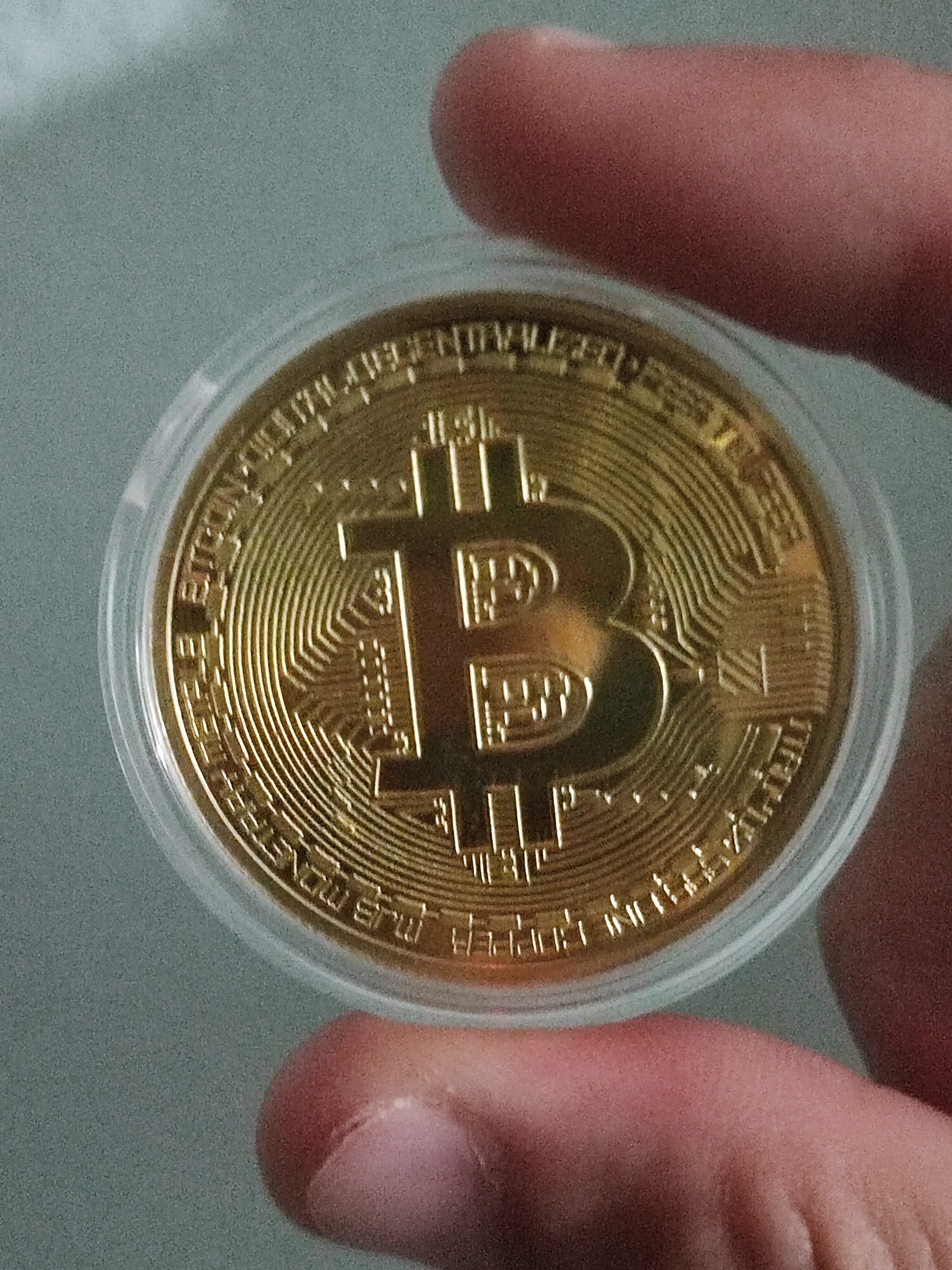 For a long time I had the concern of having some representation like this Bitcoin, simply because I like Bitcoin and it turns out that I ordered this one by AliExpress according to the description of the coin is mental and has gold plating, it cost me very cheap $40 Mexican pesos. It is a collector's coin for cryptocurrency lovers, it arrived in perfect condition, it shines a lot and comes with a plastic case, although I bought another display to make the coin look more elegant.
