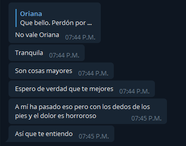 Una vez regresé de consulta le escribí al director y a los miembros de la orquesta, diciéndoles mi situación con el dedo de la mano y que no podía tocar así, en realidad fueron muy comprensivos y desearon mi pronta recuperación.