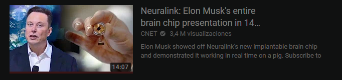 Después de ver estos video vi que Youtube me sugirió el más reciente video de updates sobre Neuralink, el proyecto de Elon Mosk donde colocan un implante en la cabeza que planea cumplir varias funciones, como generar el movimiento de articulaciones en personas parapléjicas por ejemplo. Estuvo súper interesante, el dispositivo es muy pequeño y la operación seria realizada por un robot en lugar de una persona, también este se puede retirar si se desea y según Elon se planea que con el tiempo los costos por operación no sean tan caros sino que en promedio cuesten lo mismo que cuestan algunos dispositivos electrónicos. El futuro va a ser increíble.