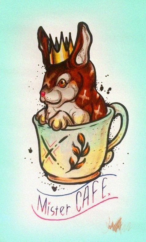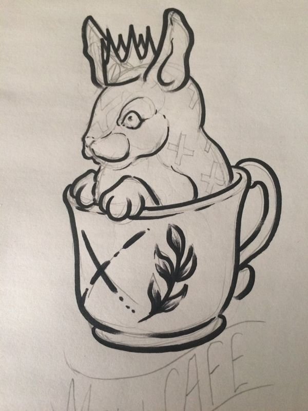 For this illustration I wanted something with a thick line that reminded a bit of a tattoo design and I liked how it turned out, it has the right colors to create harmony and at the same time a certain contrast, here I leave you a little of the process of creating this little coffee rabbit
