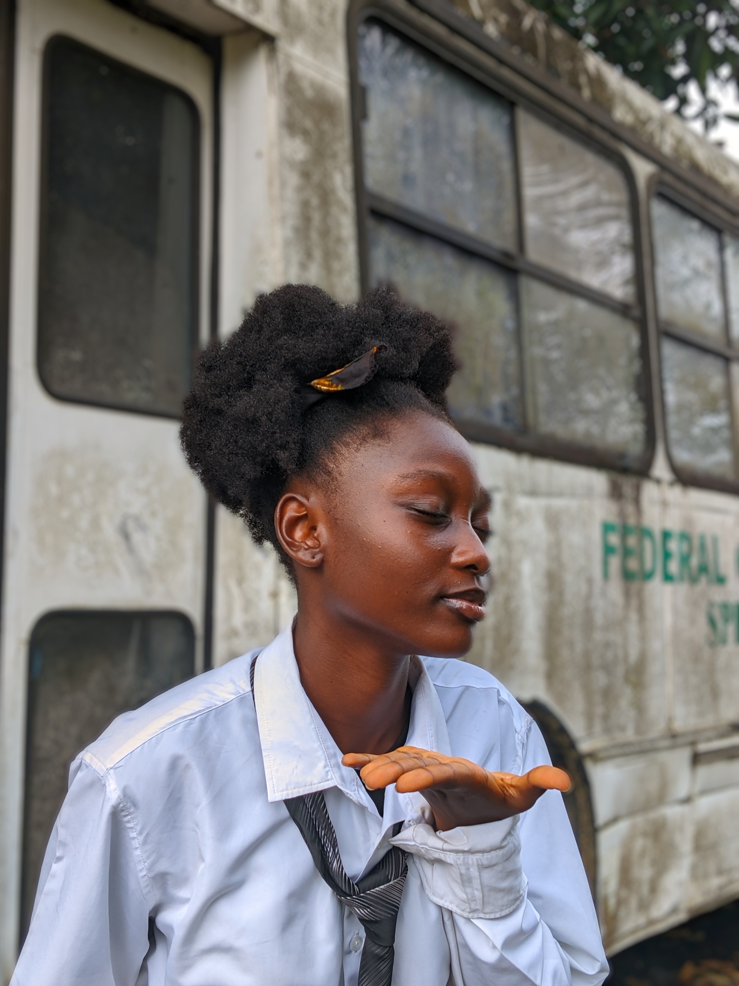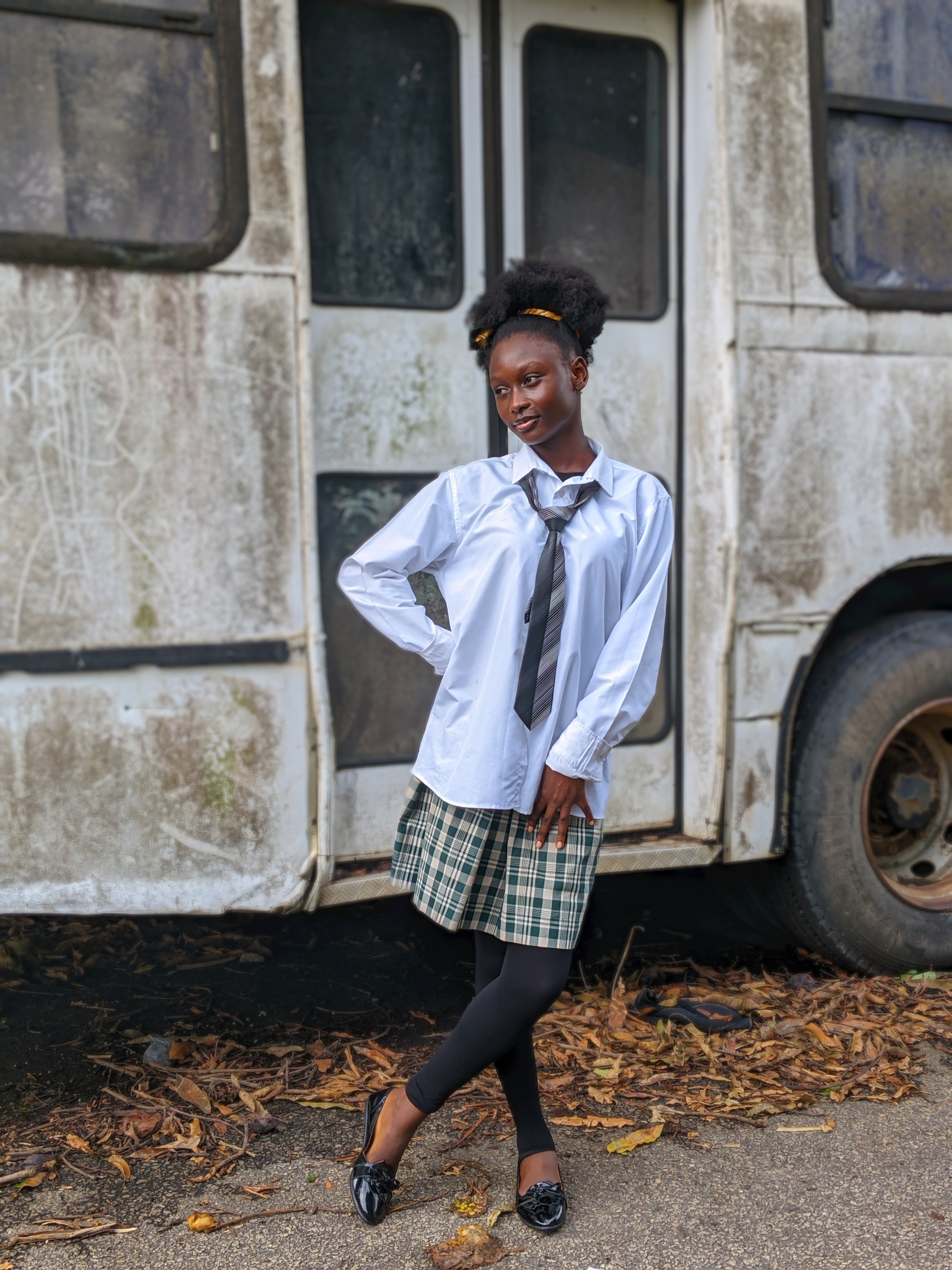 You know today just fell like those days when everything just seems to fall into place naturally. That was exactly how this shoot went. We went to a location where an old bus had been parked for quite some time. The model stood beside the bus at first in simple, casual poses. There is something about moments like that. You can’t really explain it fully, but when you look back at the photos, you know this shoot is different from the usual.