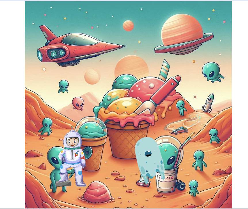 Then we had to choose backdrops for the story to make it more interactive and engaging. Rocket Station, Space, Mars Surface, Inside of a Black Hole, Alien Planet.