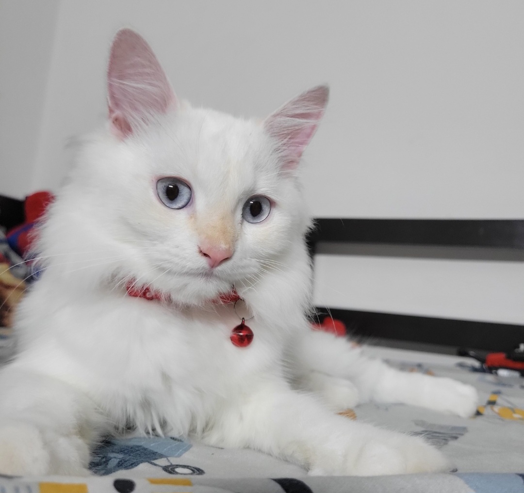 Happy Birthday to Mahad! And Milky is a very beautiful and unique cat. I love that pink nose and her beautiful blue eyes.