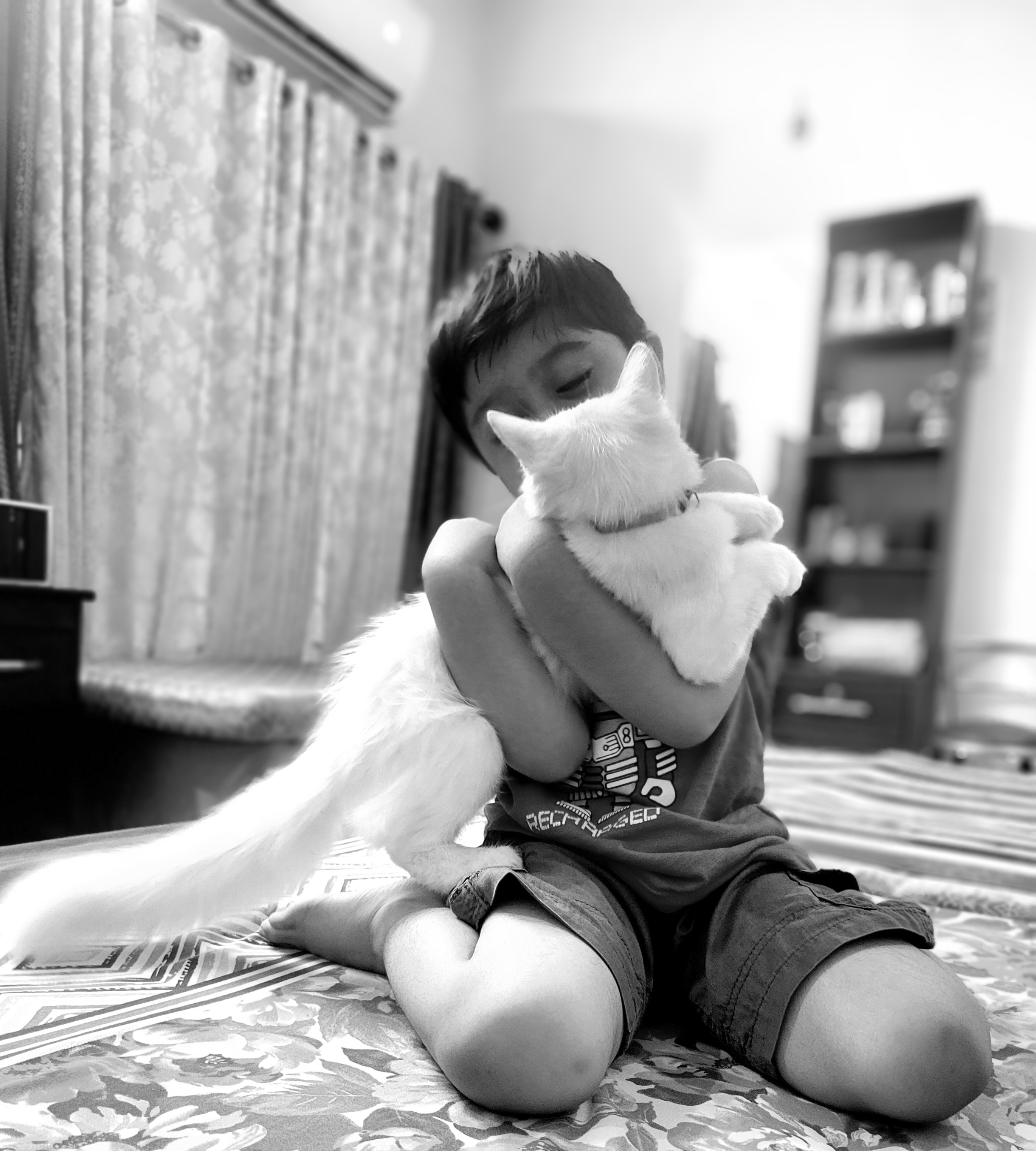 My kids are over the moon. The elder one is like me, pets her but maintains his distance. The younger one wants to hug her all the time. He's always hovering over her; she loves this extra affection but sometimes gently pushes him off when he gets extra clingy.