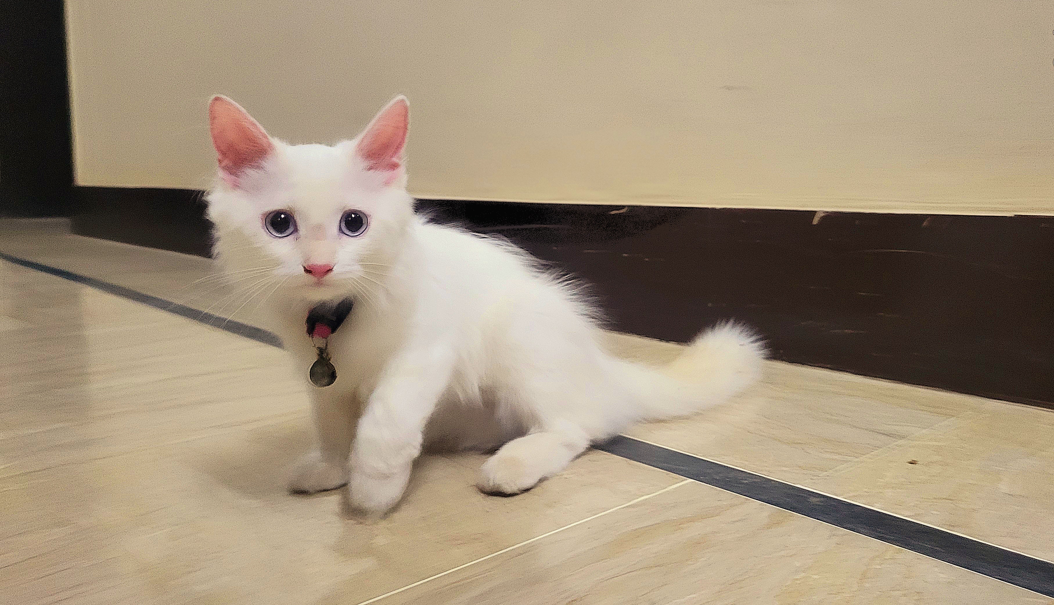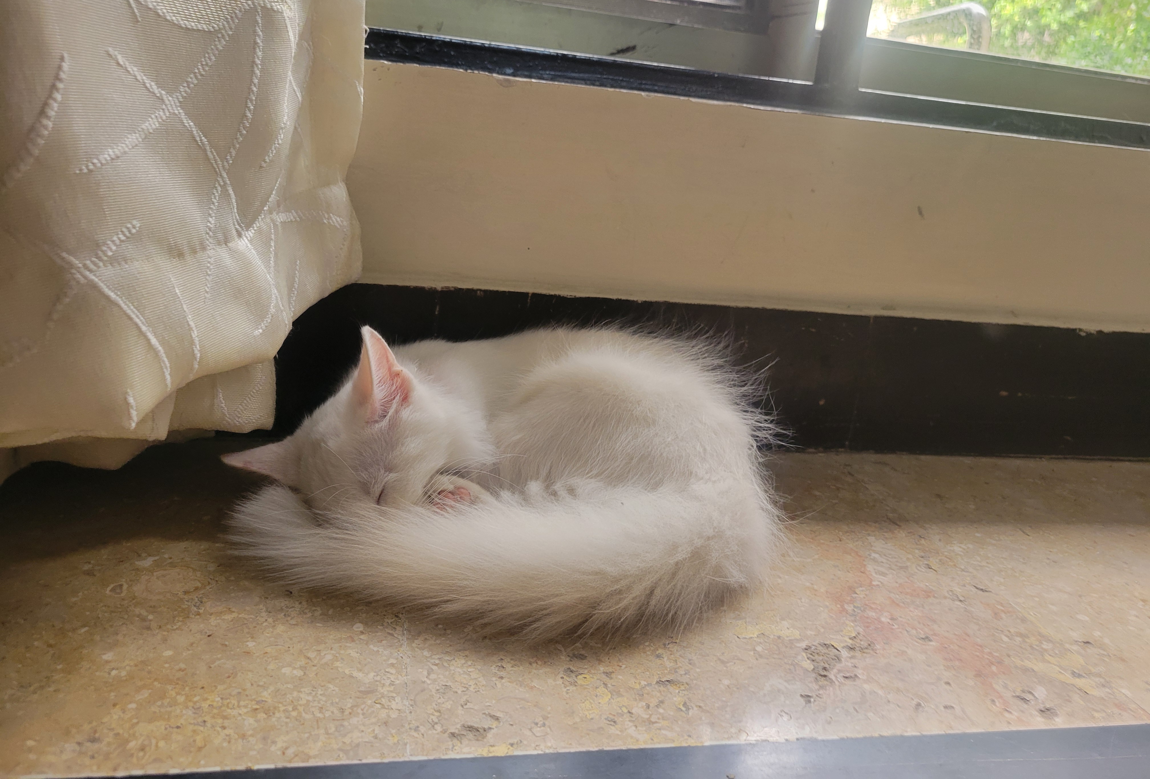 It's my first experience living with an animal under one roof. I must admit that it's a wonderful one. The cat is so cute and affectionate, the mere glimpse of her brightens my mood.