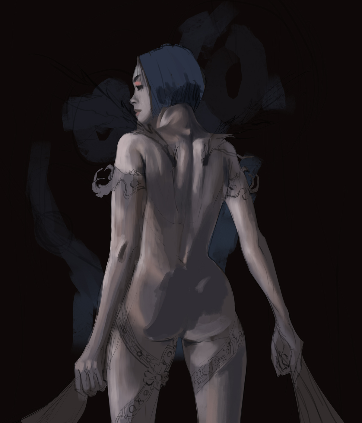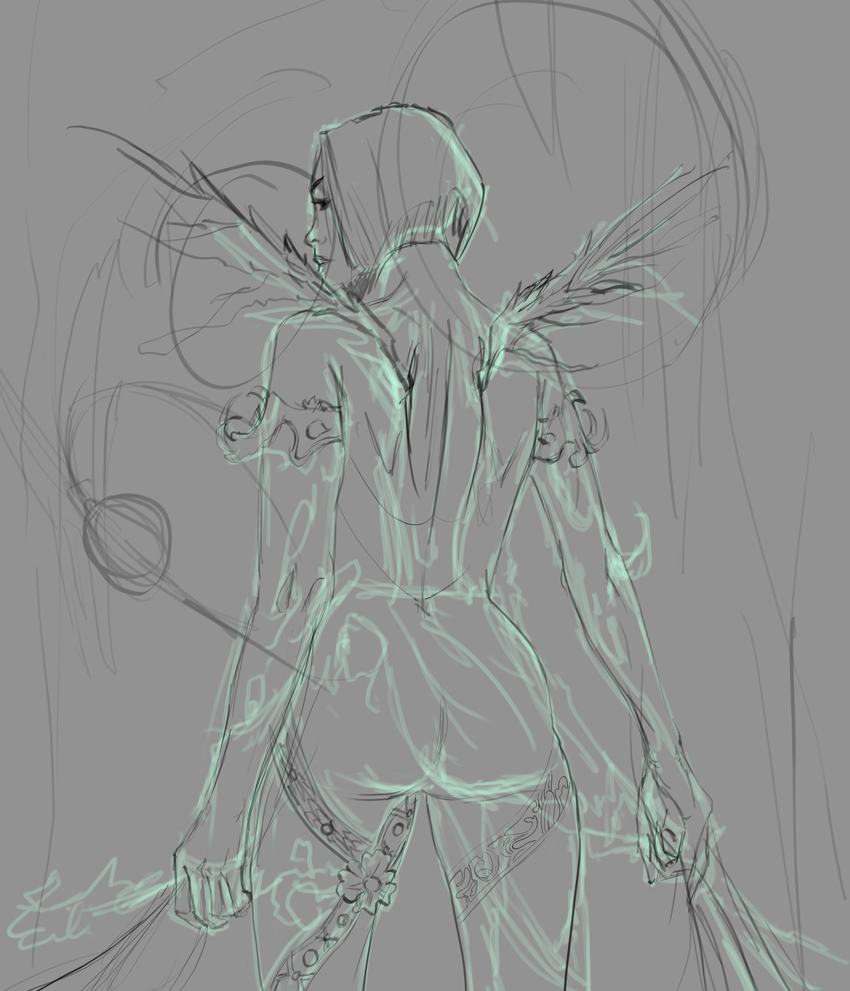 As usual, I started with the sketch,focusing on correctly establishing the girl's anatomy, I didn't need to go into too much detail as I didn't plan on using these lines much.