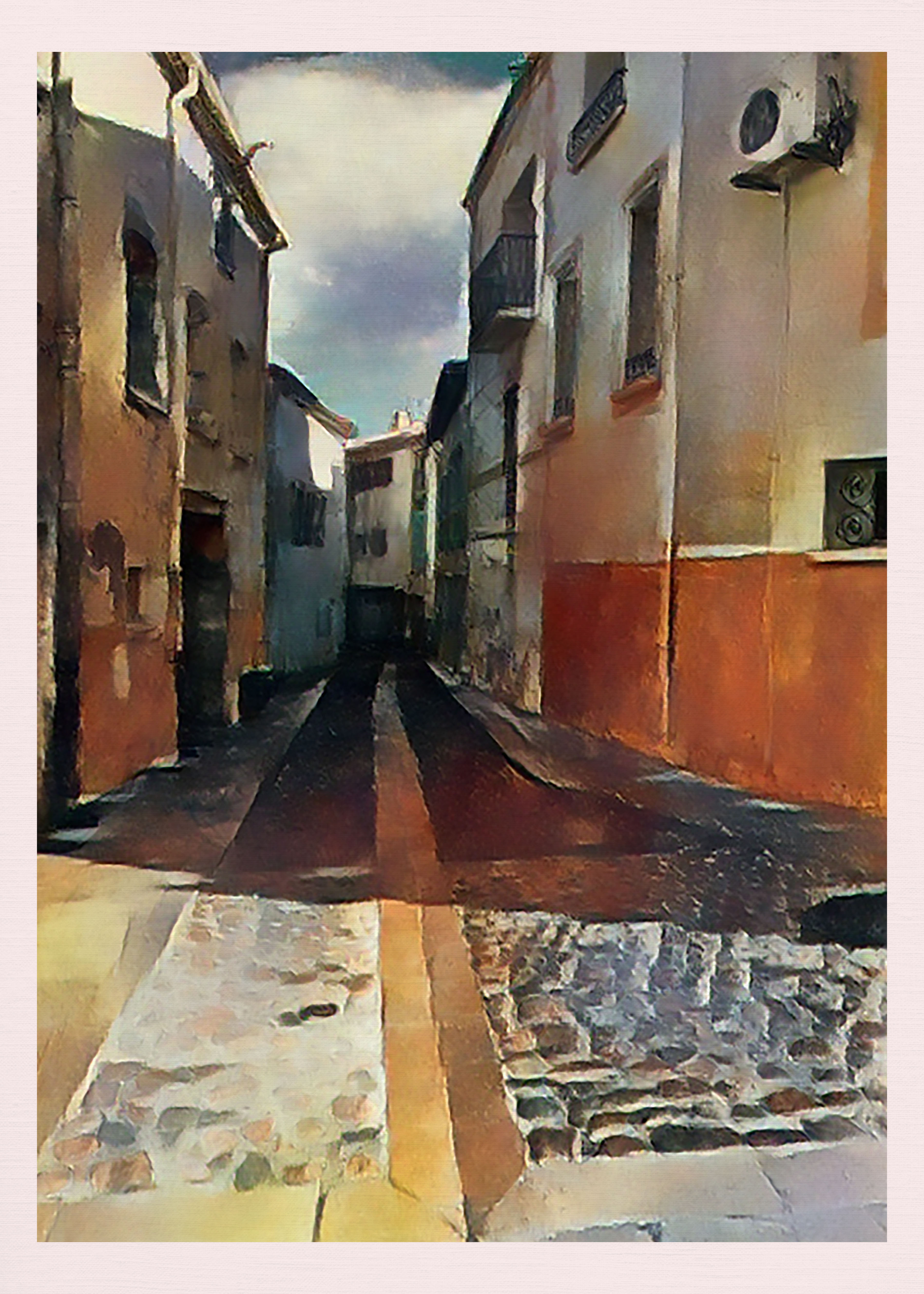 I would like to share with you this work of an old street in an old town next to the Pyrenees in France.